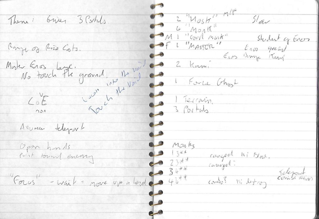 I have to mention Master Enos. While the concept was mine, I have to credit Toby (The “T” in GCT) for his Divert Energy Ki Feat, which became his defining feature. I got to help with this before being hired by GCT. At the same time I also submitted ideas for the metal and void Kami, both of which eventually were released and are surprisingly similar to the original concepts.