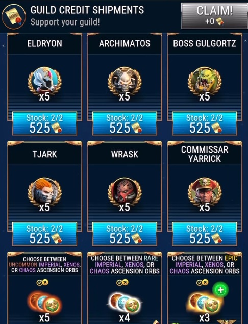 huge. There are 12 Common, Uncommon, and Rare bosses in a Guild Raid season, and these currently reward orbs that are - not to put too fine a point on it - basically useless after a while. Now, instead, they will reward Credits that you can spend on Legendary Orbs!