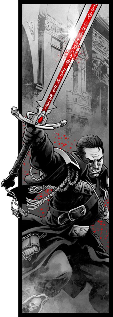 Dan Abnett's depictions of blade-fighting. If Abnett is a trained swordsman he's been rather quiet about it, and his depictions- often climactic- tend to be painted in broader strokes rather than finer details. You'd never confuse them with a depiction of fencing, and indeed remarked upon some of the tradecraft he's employed in the Illustrated and Annotated Edition of