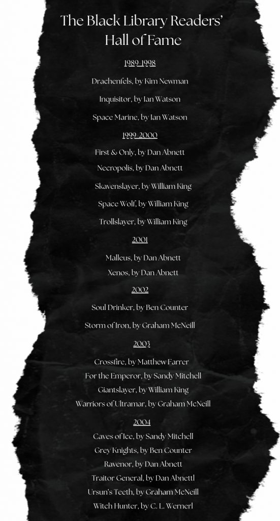 The Black Library Readers’ Hall of Fame is Goonhammer’s long-term, reader-participation initiative to recognize those novels that have “cultural, historical, or aesthetic significance” to the Black Library.