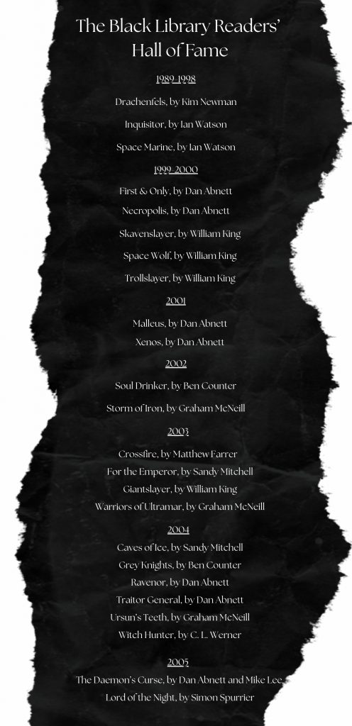 The Black Library Readers’ Hall of Fame is Goonhammer’s long-term, reader-participation initiative to recognize those novels that have “cultural, historical, or aesthetic significance” to the Black Library.