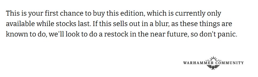here). The scalper bot brigades swarmed- as we knew they would- and ultimately Games Workshop was forced to yank the plug on the whole thing. All orders were canceled, an email sign-up for updates was posted by GW- and at time of writing there have been no further updates and no prospect of release. Outside of a handful of copies that have popped up at Warhammer retail locations, the edition appears to be in limbo.