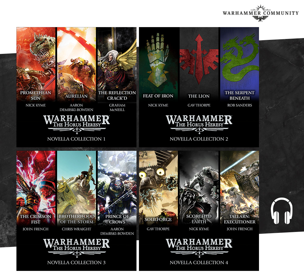 This was interesting- a new audiobook compilation series of Horus Heresy novellas will be coming out soon. Each of the eight collections will feature three novellas, all of which have been previously released. For example,