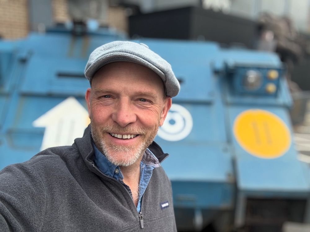 Hell's Last, The Bookkeeper's Skull) enjoying a moment in front of the lifesize replica Rhino outside Warhammer World in Nottingham.