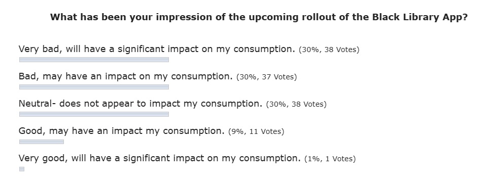 The big topic of discussion last week was the upcoming introduction of the Black Library App, which would replace both the Black Library Audio app as well as the BlackLibrary.com website.