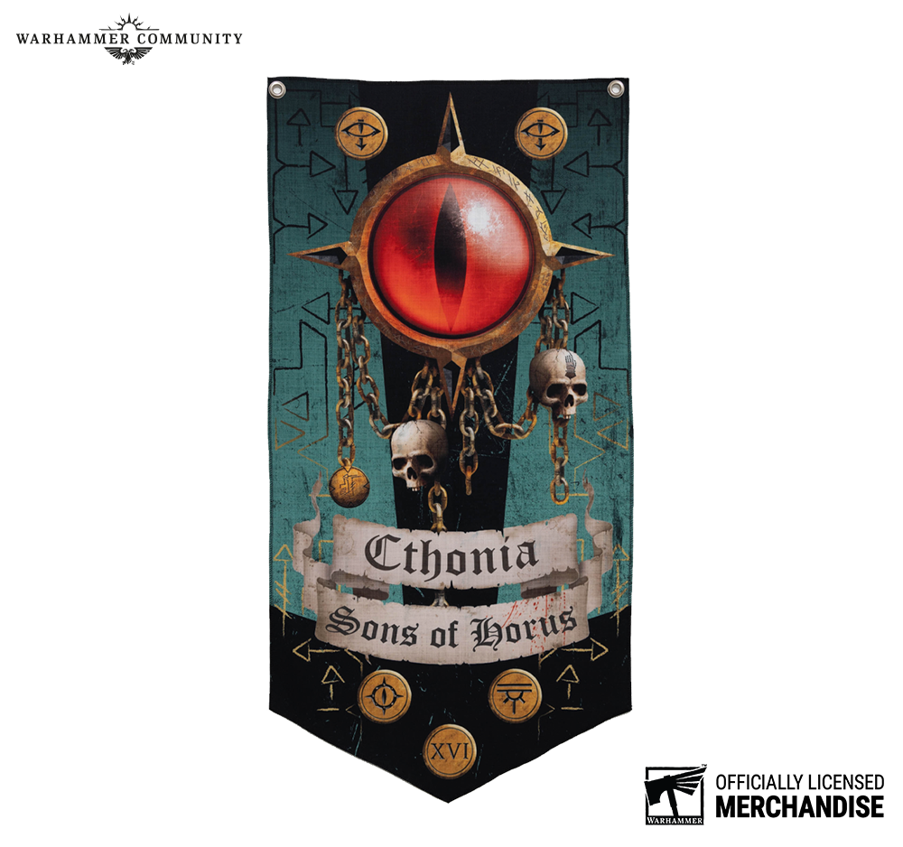 A few new reveals for the official Warhammer Merch store, ranging from new Horus Heresy-era wall banners (such as the one pictured above) to water bottles. The banners are terrific- I have one for the modern-era Night Lords- and it really ties the room together