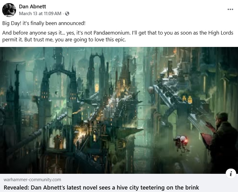 As always, if you have any other thoughts I'd love to hear 'em! I can be found on the Black Library subreddit, the Black Library Nutters Facebook Group, and on