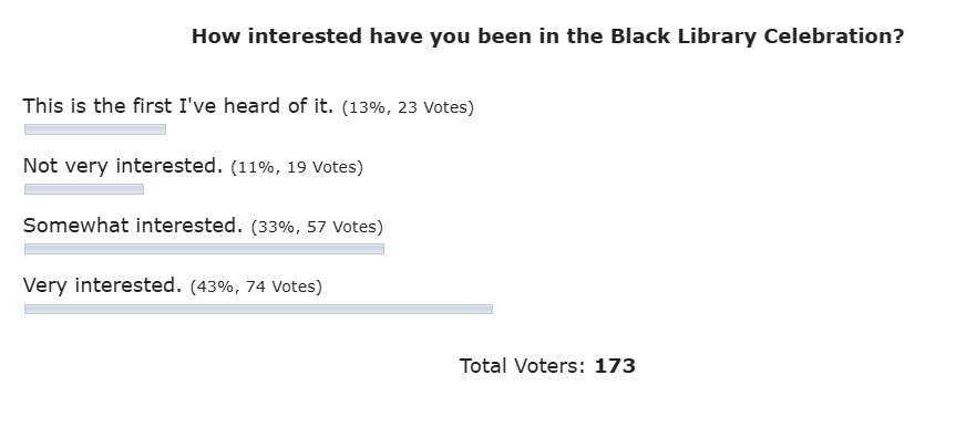 Last week I asked how you were feeling about the upcoming Black Library Celebration, and I think the most surprising result was seeing that a quarter of respondents either weren't very interested, or