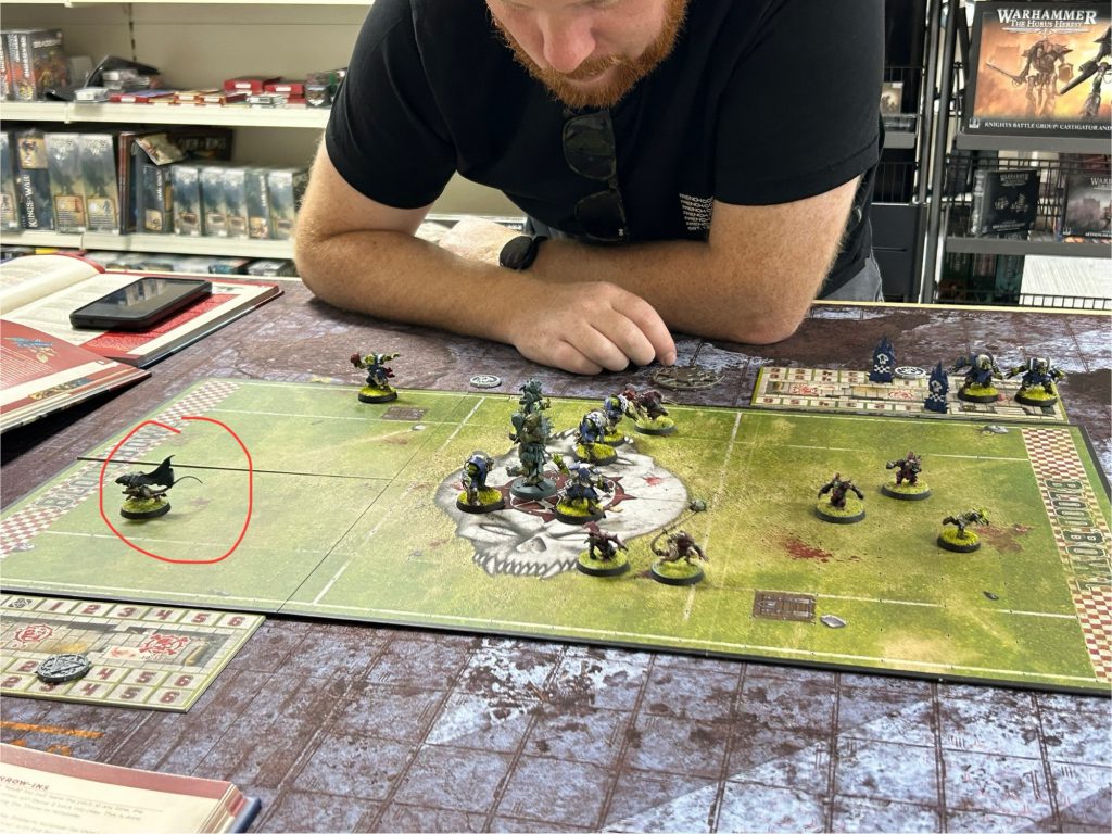 Verminslayer, Angron: The Red Angel) shared some pics from his most recent tilt at the table. Here he is, relishing a breakaway run from his Skaven Gutter Runner.