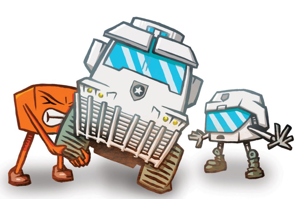 Reaction cards. These double-sided cards randomly affect the game state during the round (maybe the subways aren’t running tonight) and then are flipped at the end of the round to trigger police van movement throughout the city.