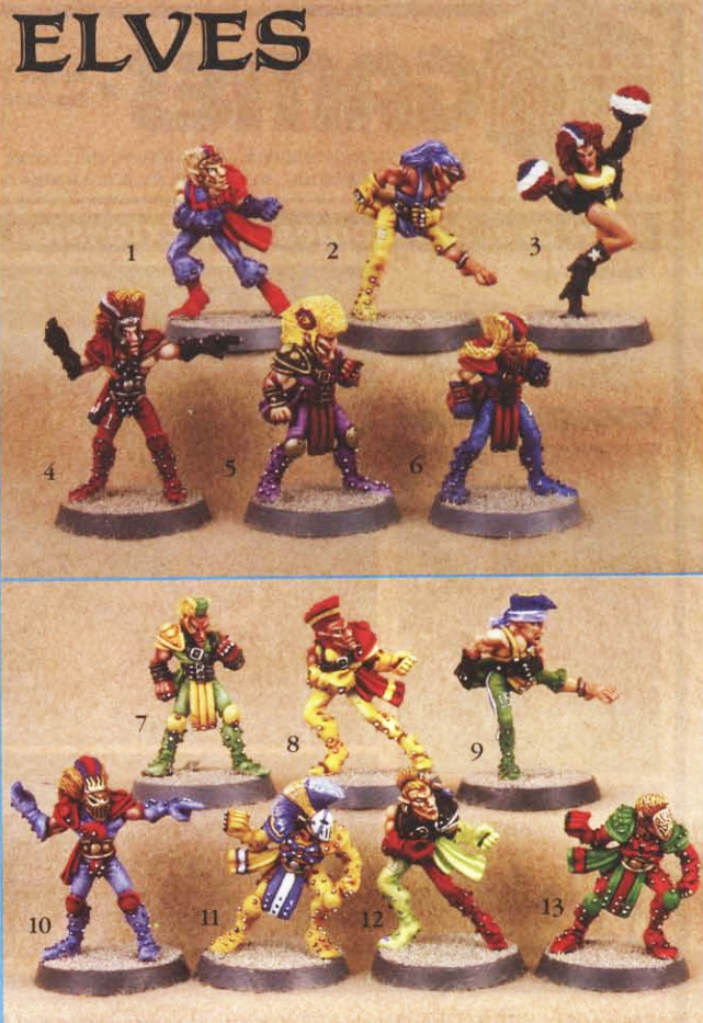 My pick of the 2nd Ed. teams would be the Elves. Certainly one of the most iconic sets of BB minis ever released, the hockey mask and extravagant mohawk hair do’s were probably the pinnacle of the ‘cyber-fantasy’ aesthetic that BB's creator Jervis Johnson envisioned for the world of Blood Bowl. Sculpted by Jes Goodwin, they had strong echoes of the same redefinition of the Eldar aesthetic (particularly through Harlequins) that Jes was doing for 40k at the same time.