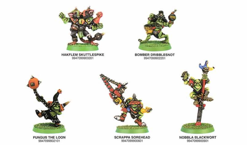 Nevertheless there are still some nice sculpts from this period, including some of BB’s most iconic Star Players, such as Ripper the Troll, and the Goblin secret weapon stars.