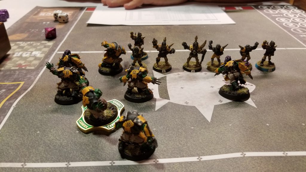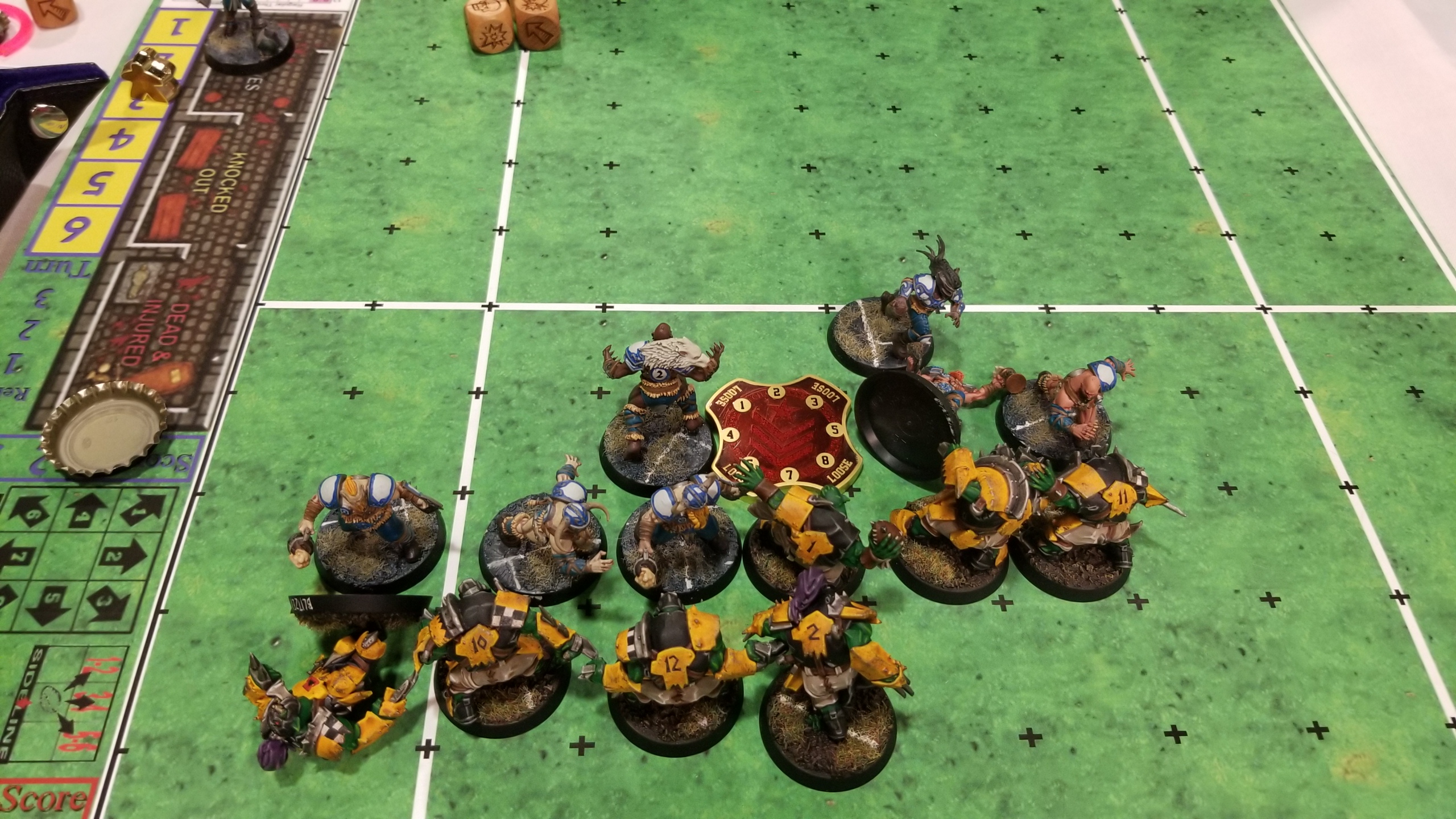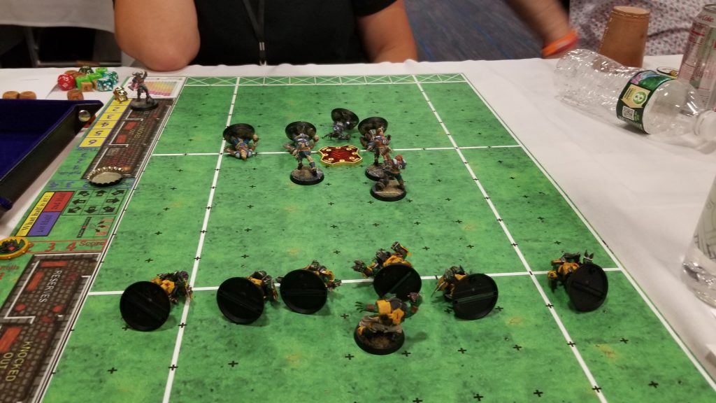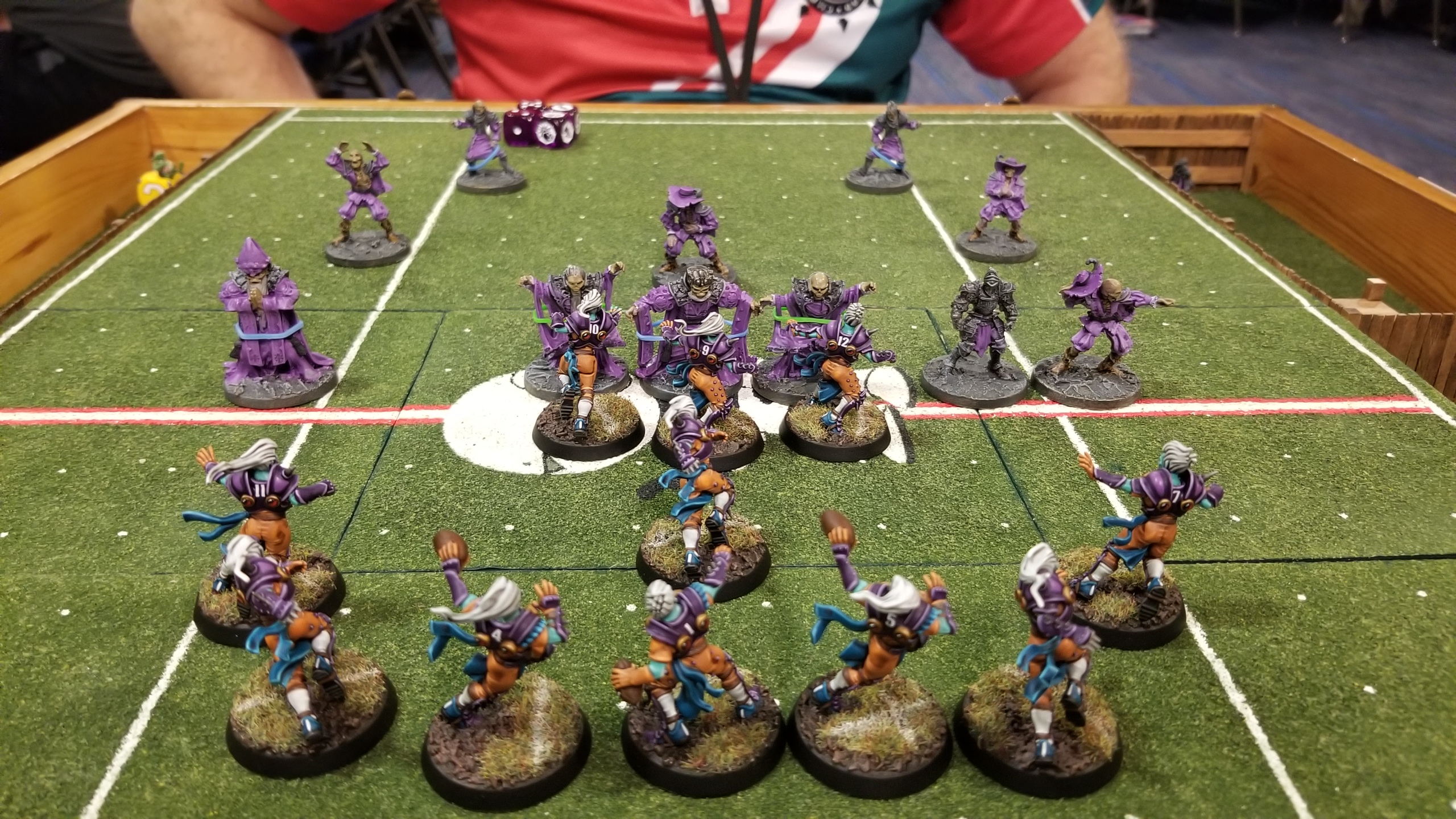 Second, the kick-off tables for both events were pretty wonky. They had “classic” Blood Bowl language throughout, and didn’t even interact with Assistant Coaches or Cheerleaders. I hope no one brought any for that reason. Hopefully the TOs will look to update these for next year.
