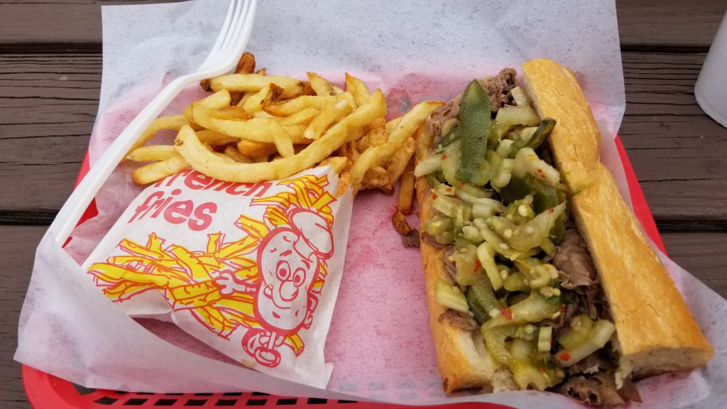 Now, Rosemont is about a 40-minute drive outside of downtown Chicago. After lunch on a Friday, which is when I got there, the Lyft to Millenium Park would have taken in excess of an hour. That’s not ideal! My friends Joe and Nancy, who have graced this column with their presence in the past, suggested that we hit a museum or something downtown, but after looking at the travel times involved, we said hell no to that and instead went to go get an Italian Beef sandwich. We took a ten-minute ride to Frannie’s Beef, a local Italian sandwich joint. I had an Italian Beef sandwich with hot peppers and fries. It was transcendental. If you’re ever in Rosemont, hit up Frannie’s. You will not leave disappointed or hungry.