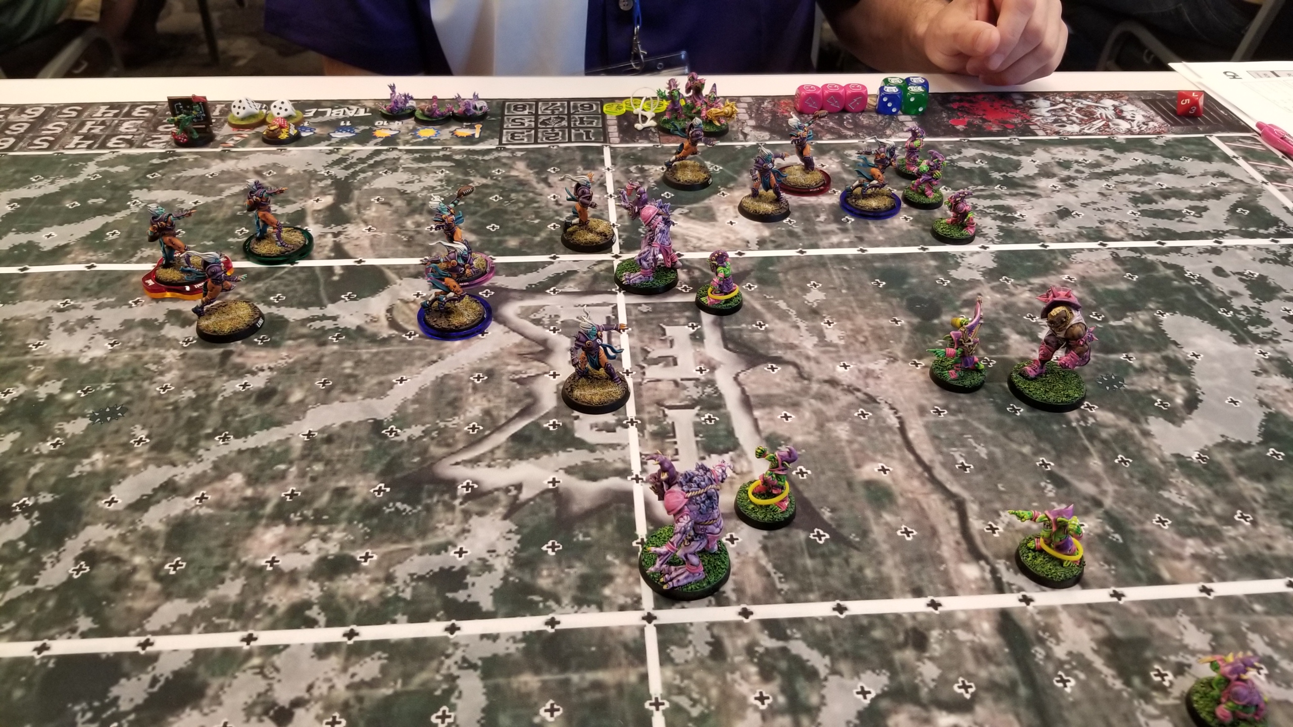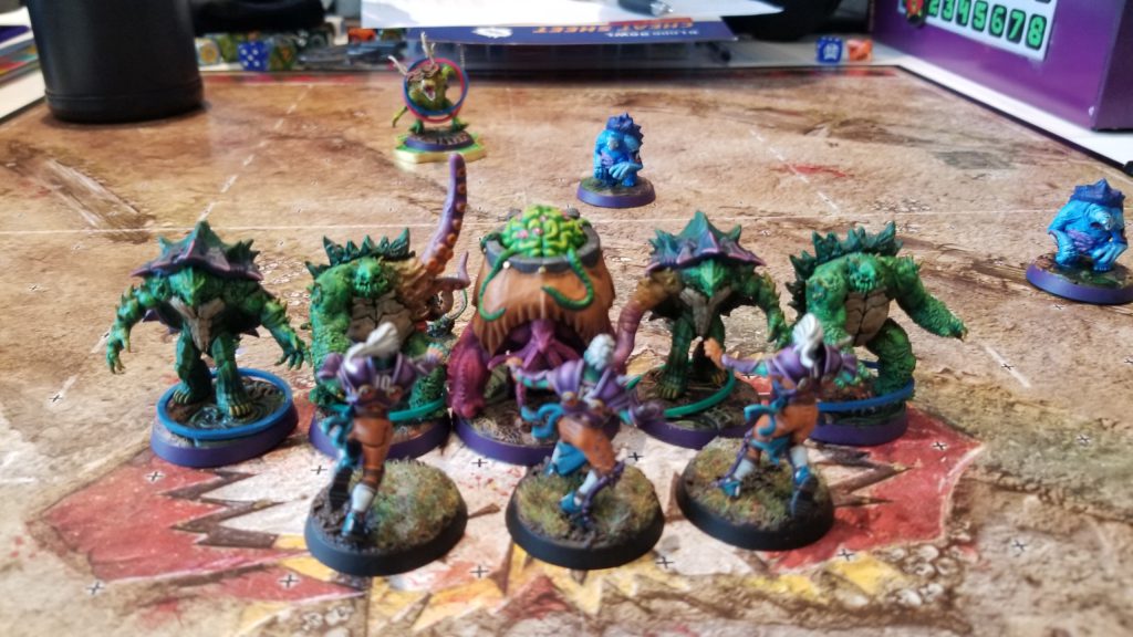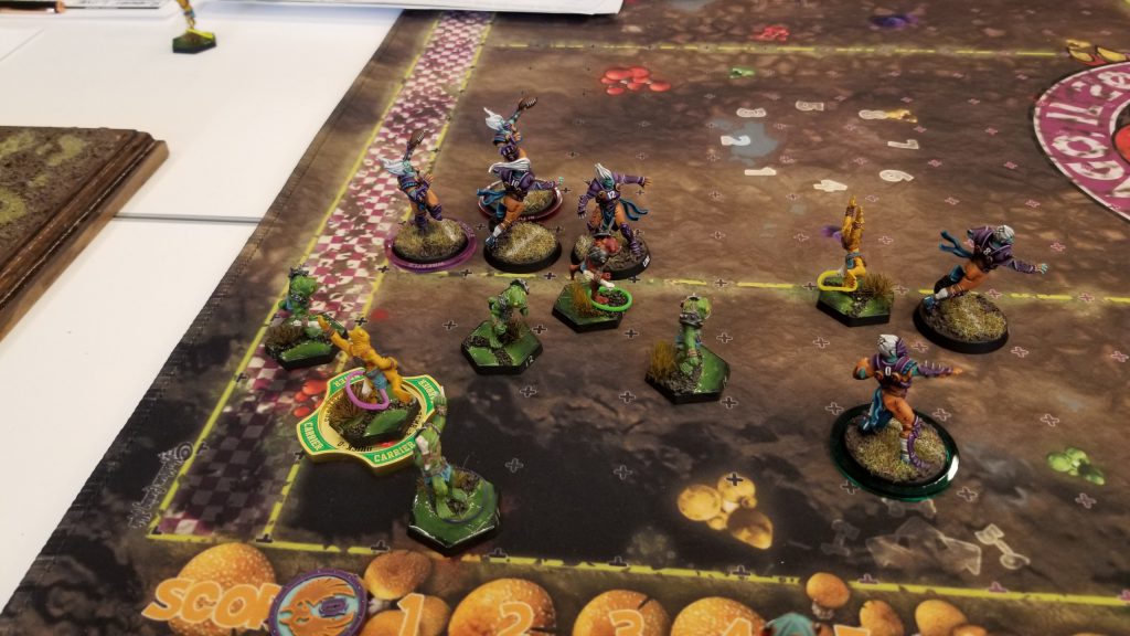 So, before this round, I had set up my team for paint judging (I did not win anything). And as I was walking through, I had actually spied Paul’s team on their tricked-out TMNT display board. Paul had done a fantastic job with this team. I’m not sure what company or whatever had designed them, but they were mutated, Nurgle-fied, teenage turtles, and Paul had done a great job painting them and building the display board. I was honestly thrilled to line up against him, so we got down to it.
