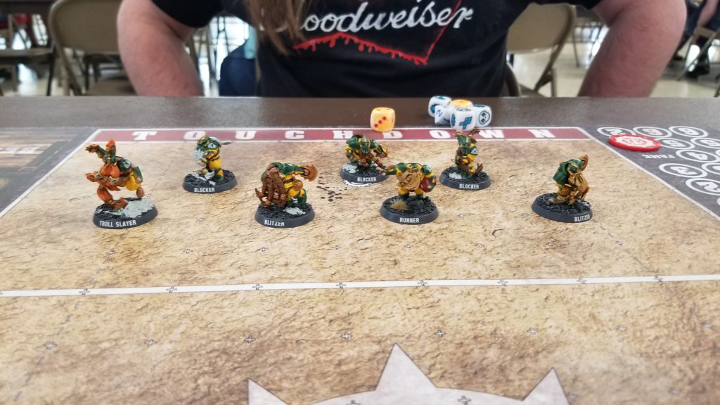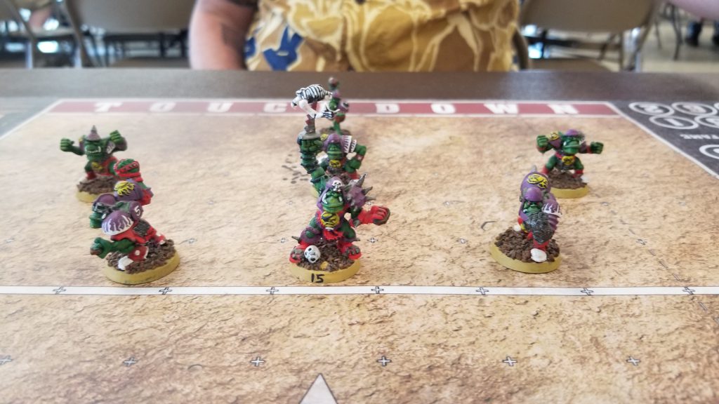 Before we start, y’all are going to have to forgive me for not taking a ton of pictures. 7s games move fast and with no rerolls on most rosters, turnovers happen extremely frequently. I did my best, but for a couple of these games I completely forgot to pull out the phone camera.