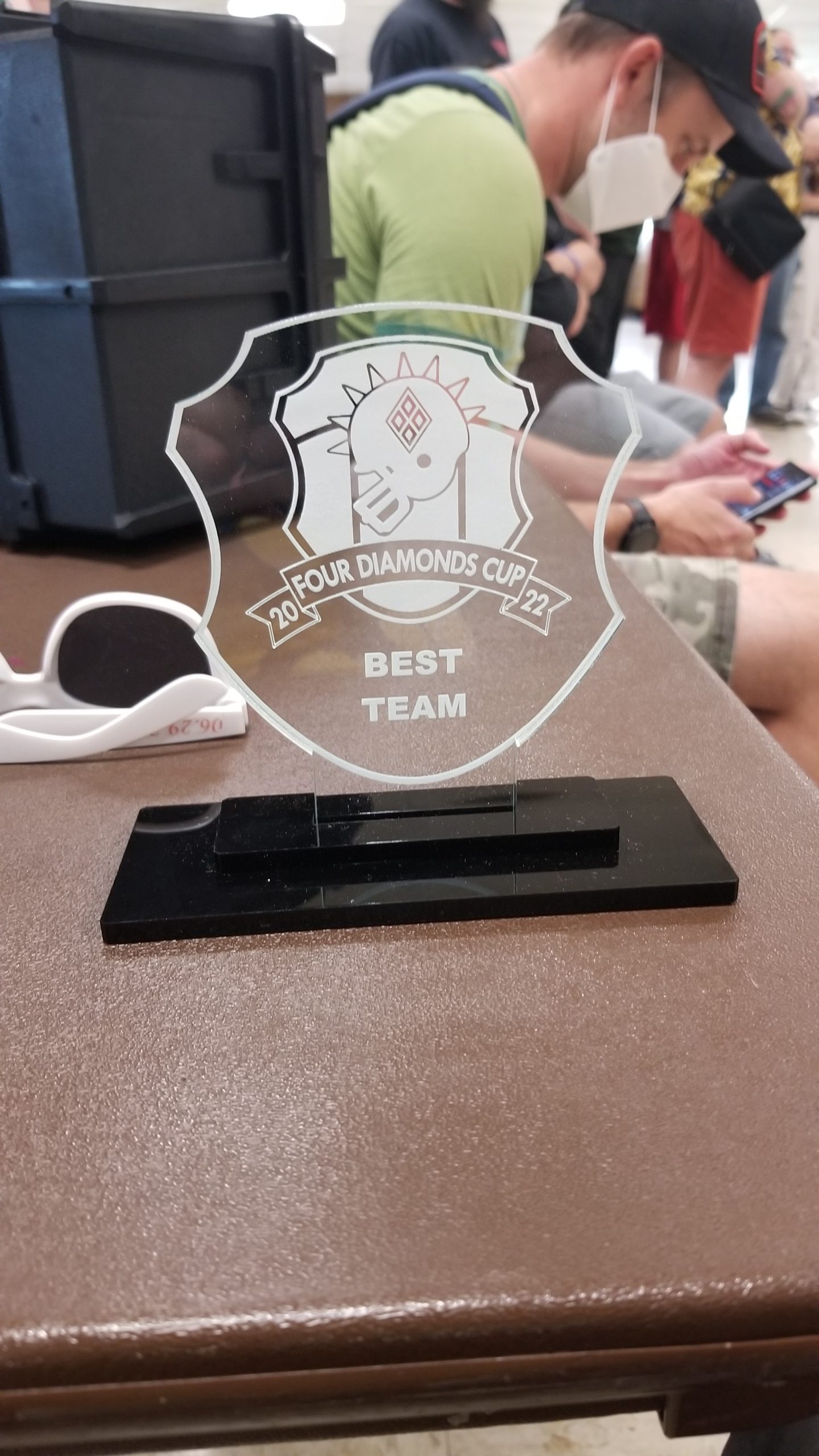 So, after 5 games, I’m 2-2-1. Good enough for 12th place. My ride, Michael, manages to go 2-1-2 and grab the 9th place spot. Despite that last game, I had a great time. We gather around for awards, and to my surprise and delight, I win Best Team, the best painted/converted/theme award! I’m quite chuffed to have been given the nod for best team, as there were a lot of excellent-looking teams around the hall. With that, TO Jamie tells us we’ve raised $4,000 for the Four Diamonds Foundation, which fights childhood cancer. An excellent way to spend a Saturday. Michael even gets to take home the best rookie award, so our car ride on the way home is conducted in high spirits. I think I remember Jamie saying that they’ll be sticking with the 7s format next year, and I’m excited to attend again. All in all a great event with fun games, great TOs, and a good venue.