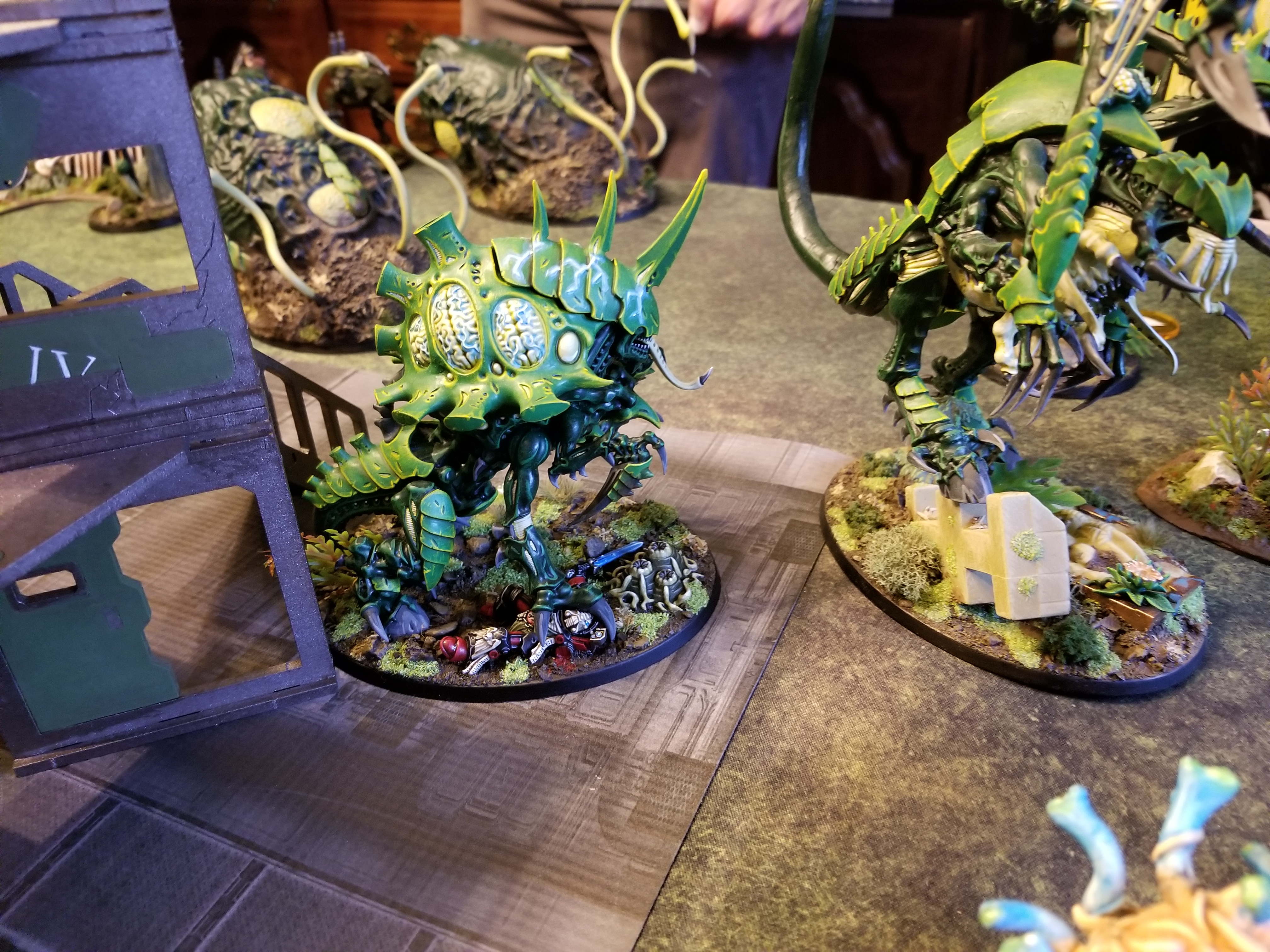 - Accelerated Digestion: At the end of the Fight phase, if this model killed an enemy model, it regains up to 1 lost wound, to a max of 3 per turn. B- I think this has a place, especially with the updates for the tentacle big bugs. They are already going to be in the fight and being able to heal 3 wounds just for killing three guys? Pretty good. Add in our 2CP heal stratagem and we might have some pretty scary durable close combat monsters.