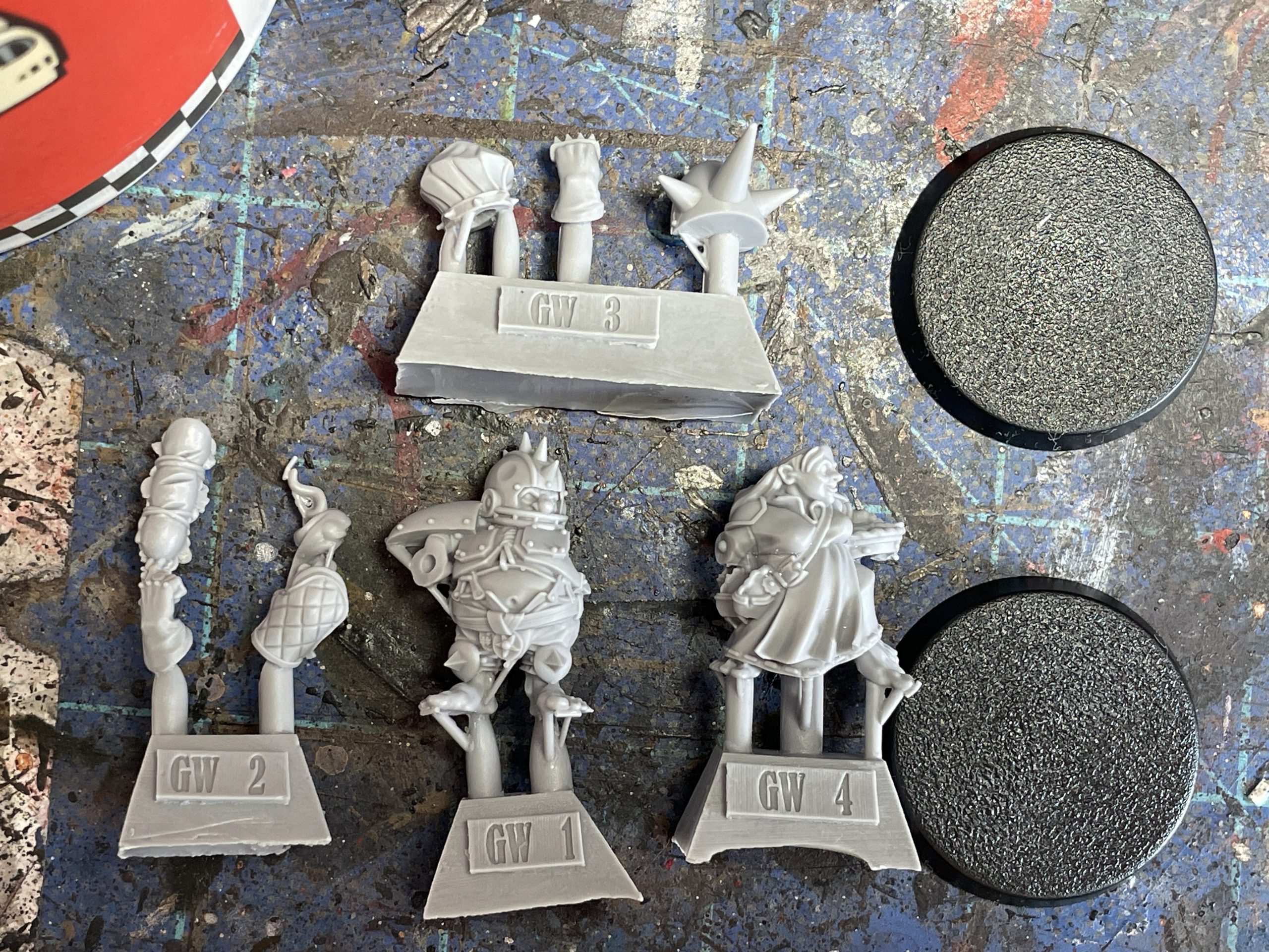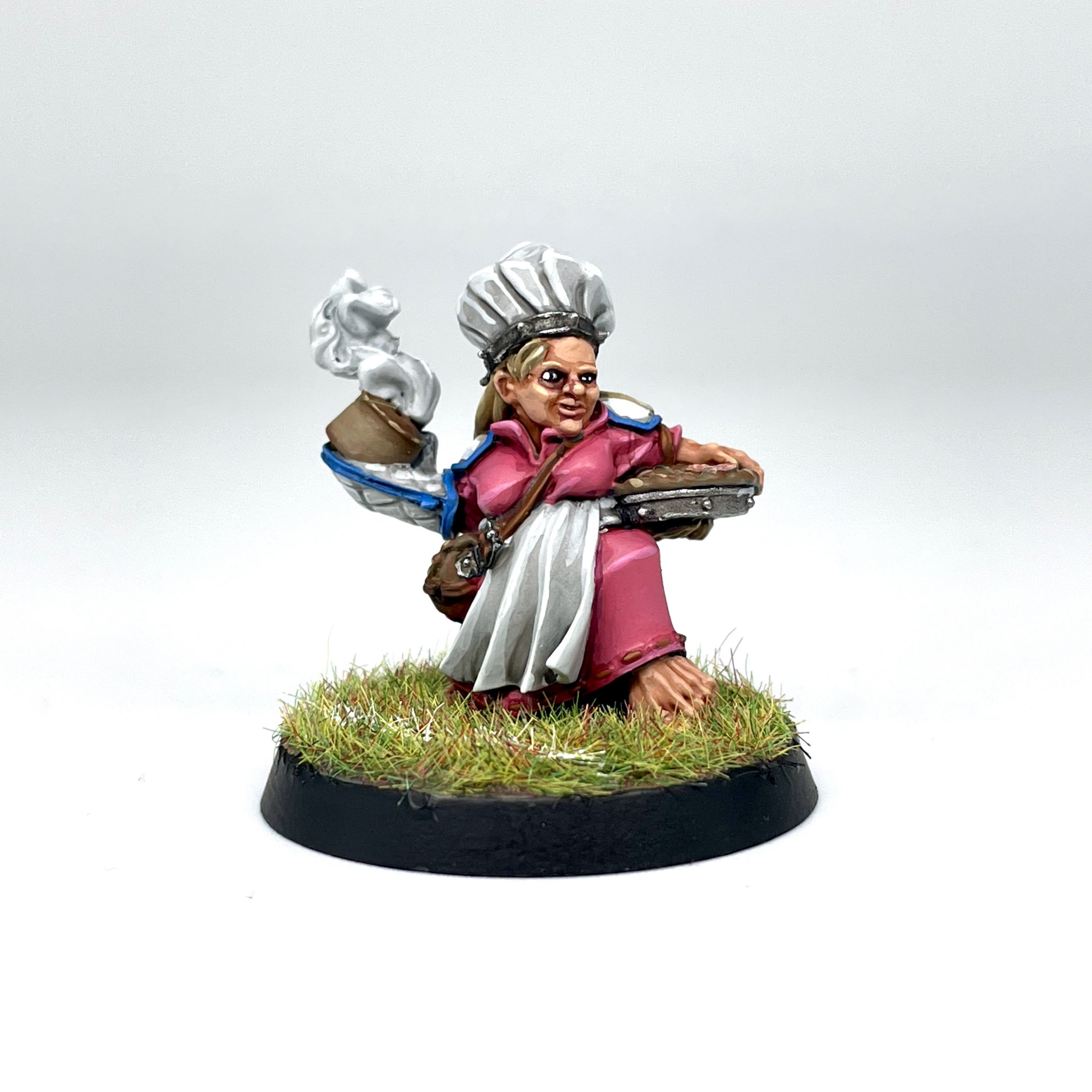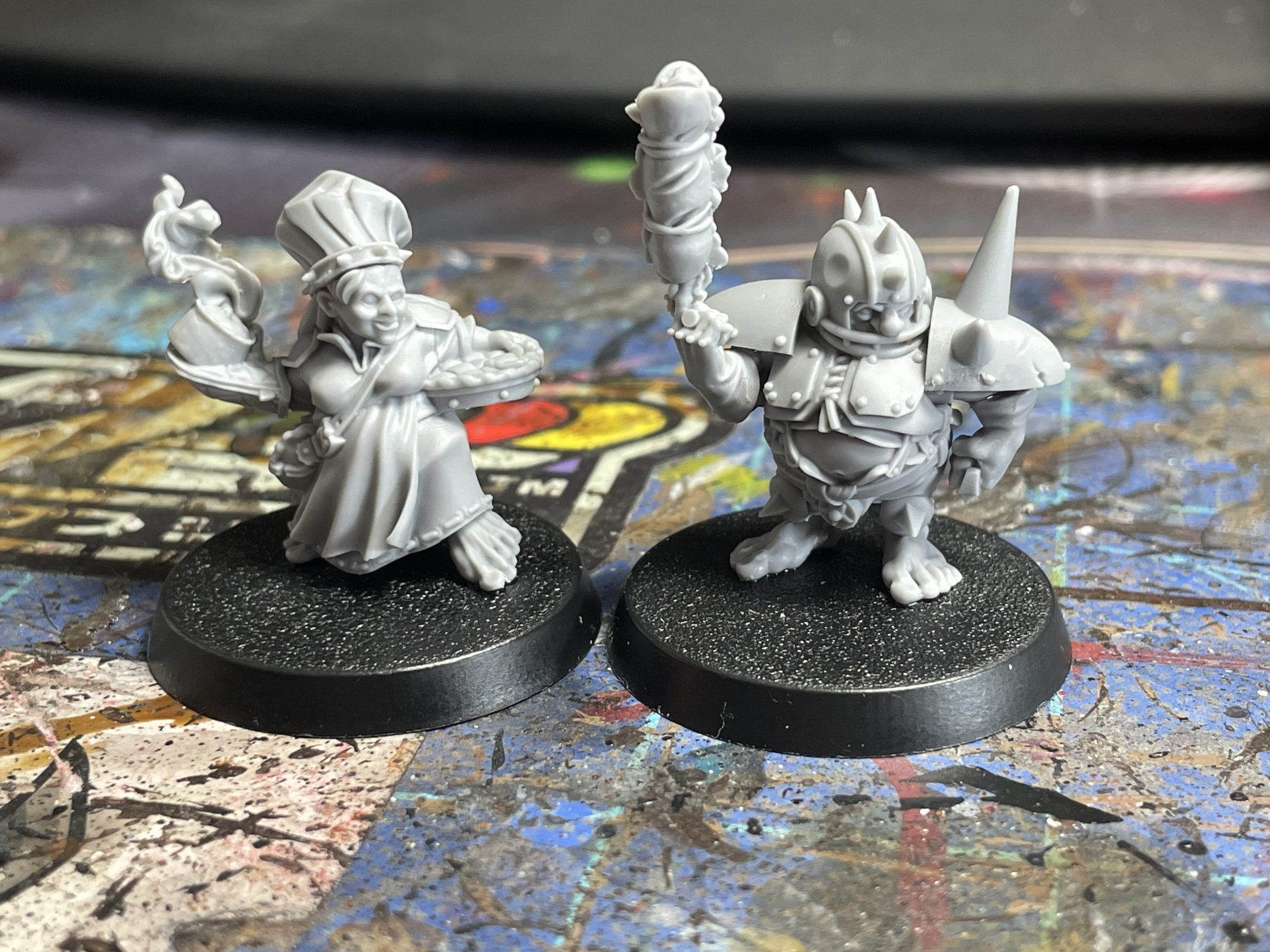 Modiphius levels of clean. I had no miscasts, and only a wee bit of mold slippage on Puggy's shoulderpad, which left a seam that was easily shaved down. There were a few resin gates that took some deft knifework, especially on their toes and the steam from Cindy's pie. I will not post closeup toe pics because none of y'all pay enough on Patreon for