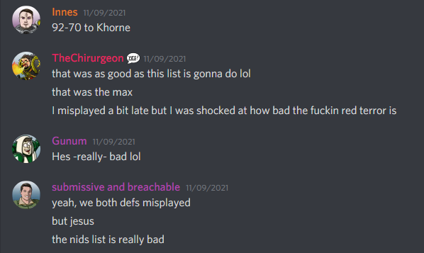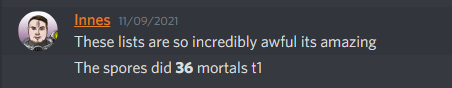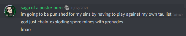 Scott won the roll-off and his Turn 1 basically started with him crashing the entirety of his Khorne daemons into the spore mines in a glorious example of fucking around and finding out.