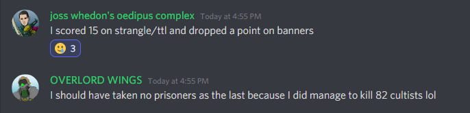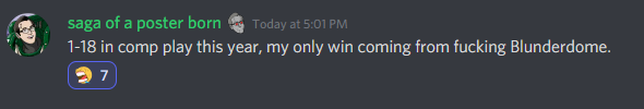 This is it, Dear Reader - everything we've talked about, all the games we've played, all the shit we've talked to each other on Discord - it's all led to this. The final round of games for Blunderdome. Last time we tallied up points and previewed this week's games. Before we dive into those results, here's a quick update on scores: