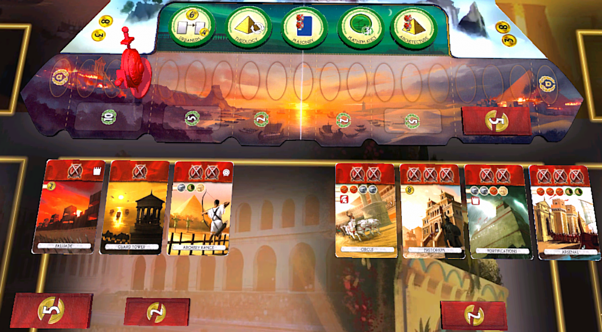 The main pros of the game are the flavour (something feels just viscerally nice about getting to build the Great Library, or a Praetorium, or an Observatory and using it to clown on someone), the sheer ease of play and as mentioned before, the different ways to win.