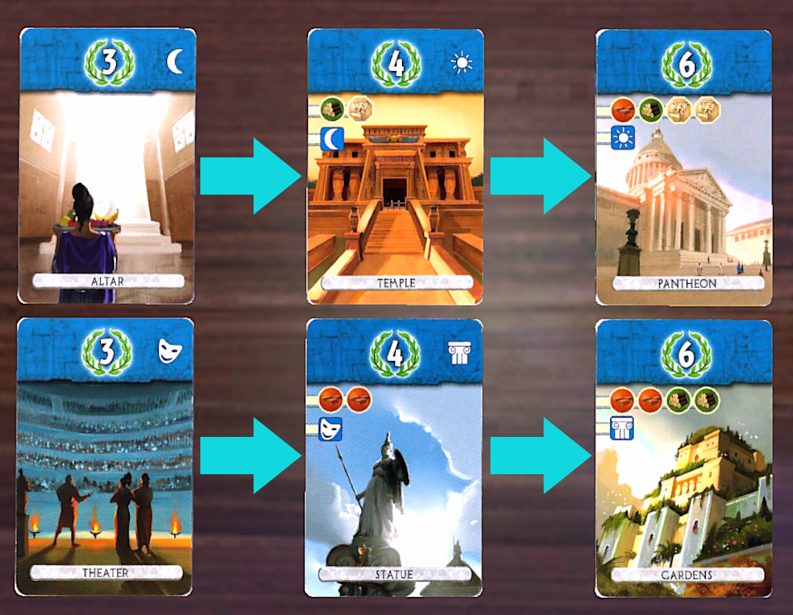 - Statue of Zeus/Circus Maximus: Destroy(!) one of your opponent’s basic/advanced resources, move your military token up and get some VP.
