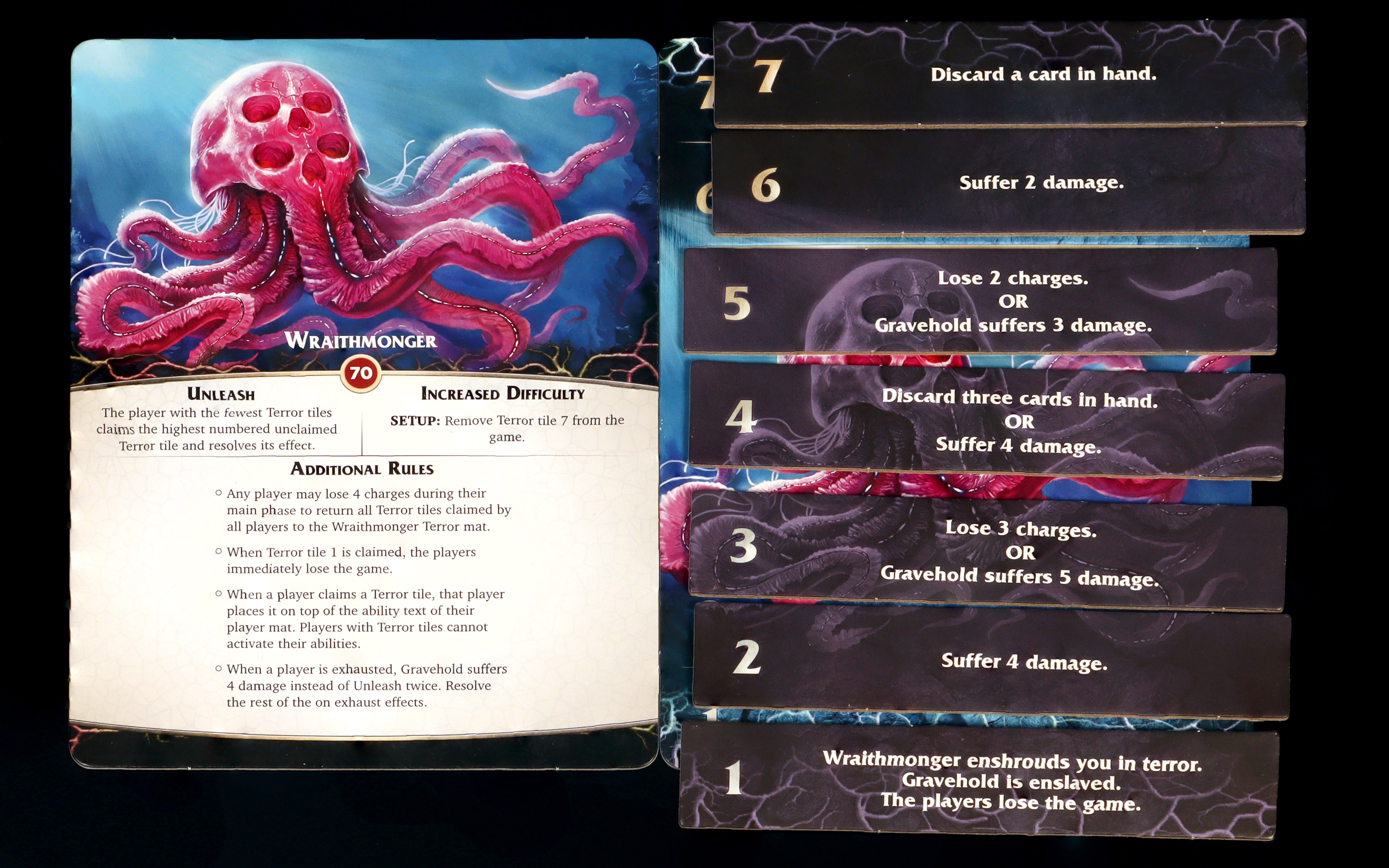 Wraithmonger not only has 70HP to burn through, but he also has that punishing "The players lose the game" ability on Terror tile 1