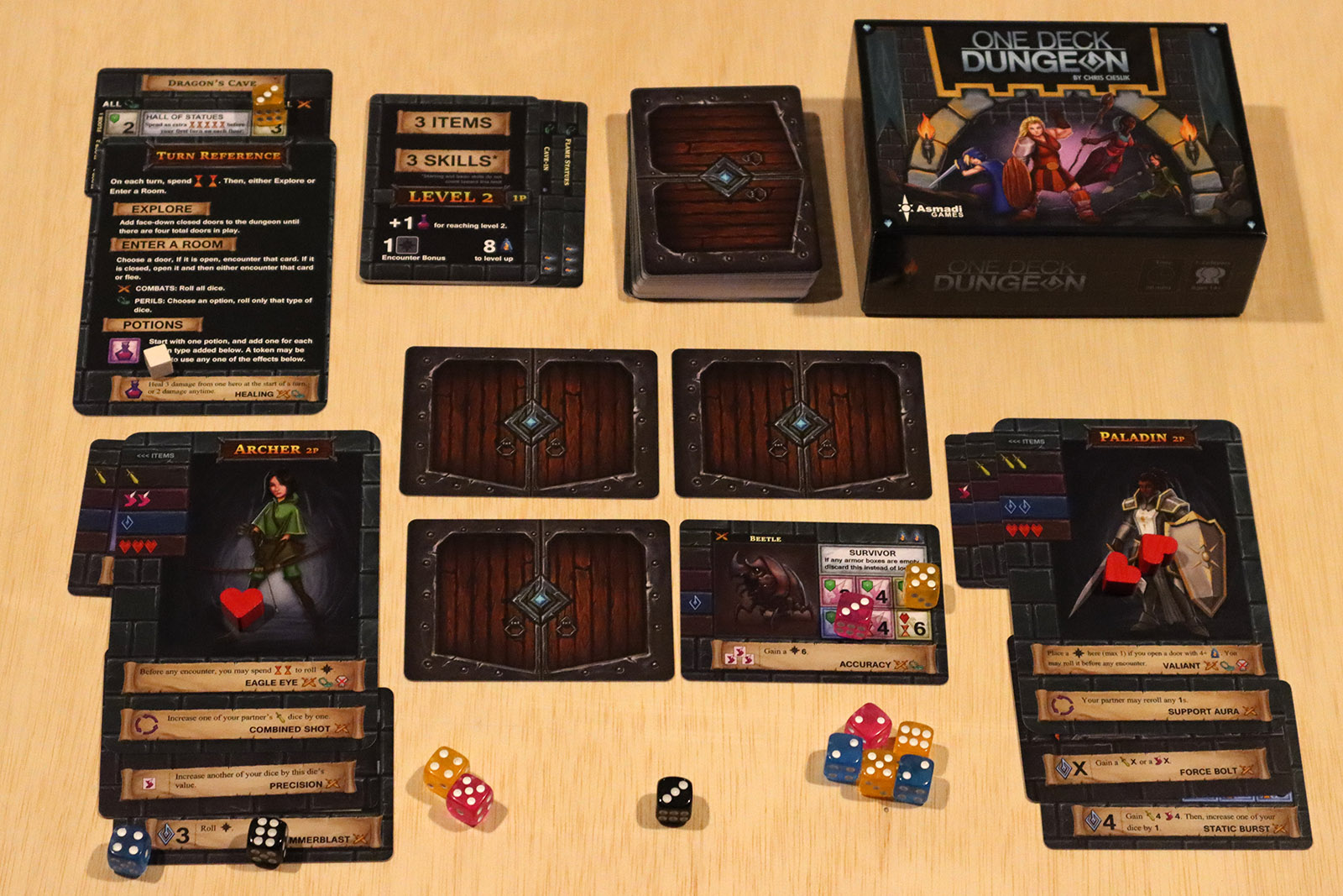 One Deck Dungeon will take you about an hour to play through, but don’t let that frighten you off. Most of that time is spent talking with your friend and solving the latest puzzle brought to you by your dice. It’s fun, promotes working together with a friend, and ends in a cheer when the final boss is defeated. A perfect game to unwind with.