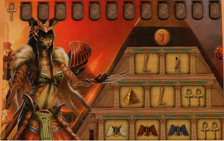 Kemet is, to put it simply, an ancient Egyptian wargame. Players play as a god and take command of a small army and seek to build power and influence by building up their pyramids and leveraging Prayers to purchase powers and creatures used to conquer the holy sites around the Nile Delta.