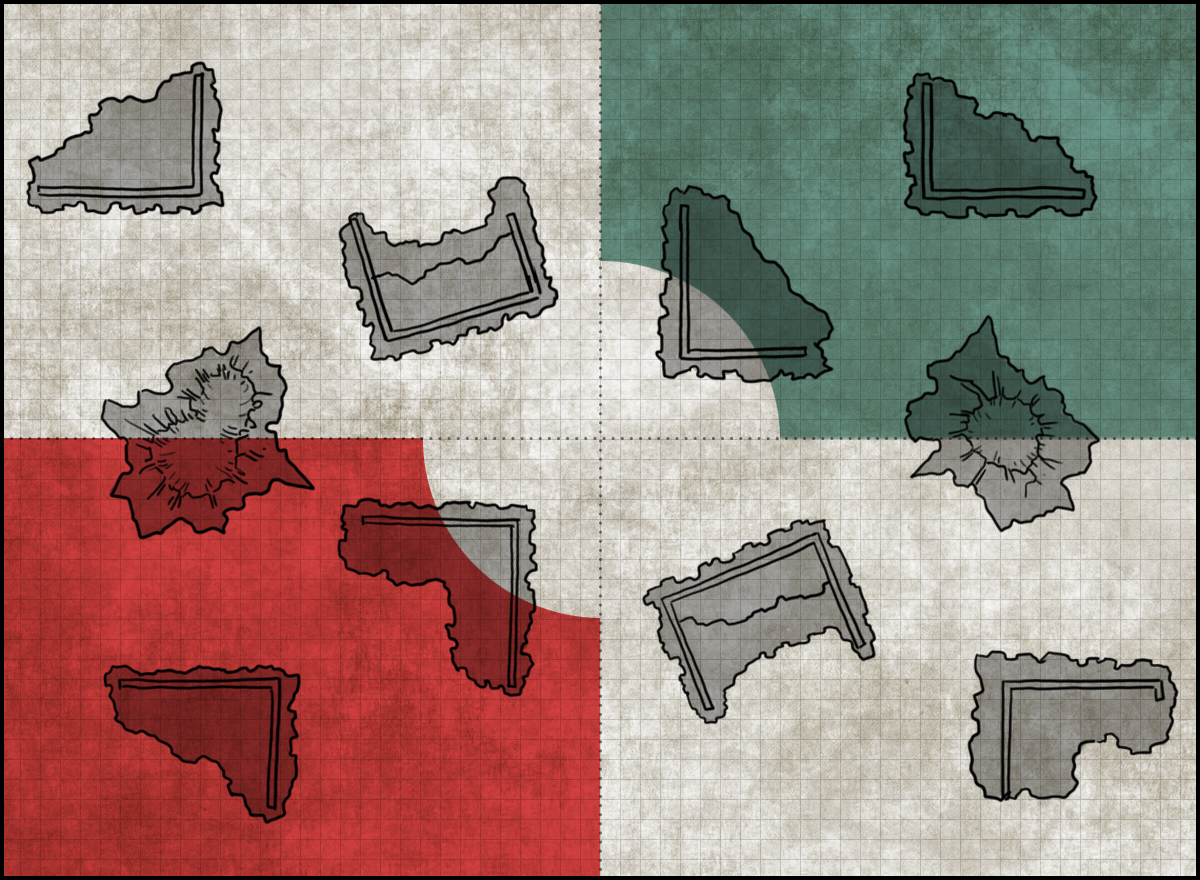 very similar to my round 2 game with Dan Axe. The deployment and terrain layout were the same, but with six objectives and only two in the open field, I had much less of a reason to move. Compounding that fact, Brian had selected two objectives that would inevitably force him into me (Stranglehold and Code of Combat) as I could place my Archon on the one exposed objective on my side and use the bodyguard rule of the Sslyth to shield him from any return fire without exposing any other parts of my army. In short, for Brian to score any of his points on Stranglehold or Code of Combat, he would need my help. My Cronos deployed on the board this time, within the bottom ruin - prepared to leap out and flame-away anything that approached. The Court and the Archon also deployed there to shimmy out onto the exposed objective. The remainder of my boats spaced behind the ruins avoiding any shots from the Silent King who deployed behind the bottom ruin on his half of the board. Our first turns were similar to round 2 - some slight jockeying, but otherwise no major movements or shots traded - my Archon did position on the exposed objective, protected by the Sslyth who were behind the los-blocking terrain. I had no reason to jump out on turn 1 and could afford to wait until turn 2 in order to get my advance + charge boost - instead I positioned some Raiders with Incubi, Succubus, and Wracks behind the top, leading ruin so I could reach out to one of his Warrior blocks on my turn and force him off the objective if need be on the bottom of turn 2.