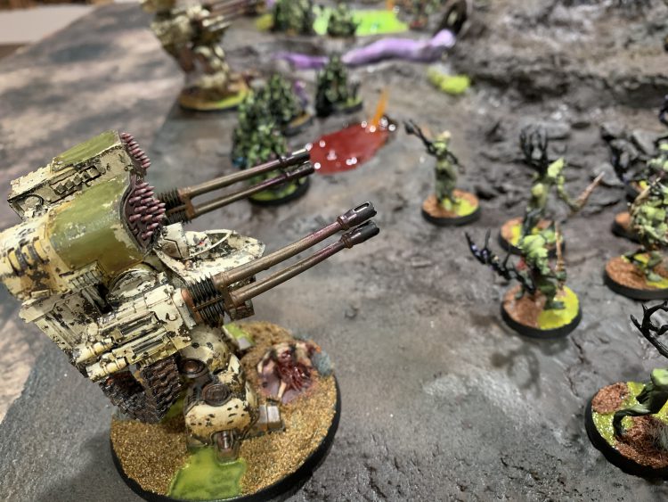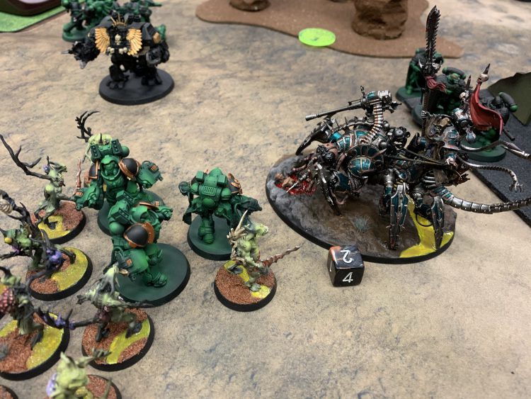 Prepared Positions to make even my T6 Lord Discordant warlord somehow survive concentrated firepower from the Lord Tyrant. As this effect lasted for the first two battle rounds, it also negatively affected me, resulting in Morty only losing four wounds after three Deredeos shot their loads at him. Another player that made rolling 5-up Disgustingly Resilient saves look easy.