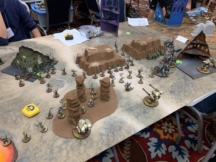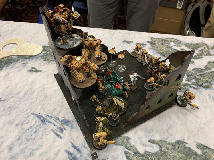 I somehow found the time to finally meet up with a couple of friends I had made through Facebook 40k groups, which was excellent to shake some hands finally. They had already both won games, so it was just myself who was struggling. Neat. I joked with my wife through a text message that I had always shot for 3-2, so I was getting those two losses out of the way early. What a jokester, I am.