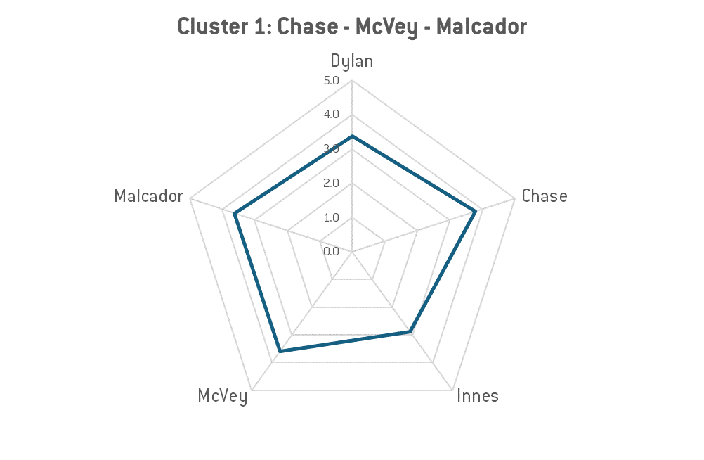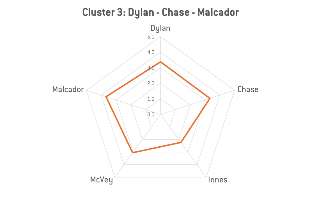 Well, the first thing is to note that not a single one of these groups fell neatly into a single category. While these players tended to share a lot of things in common across our four clusters, there were still plenty of things which could vary, and a lot of overlap - our Chase group showed a lot of McVey traits, and our Dylans had a lot of Chase, while there was lots of Innes and Chase overlap as well.
