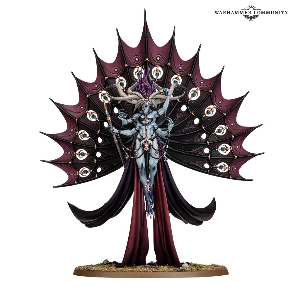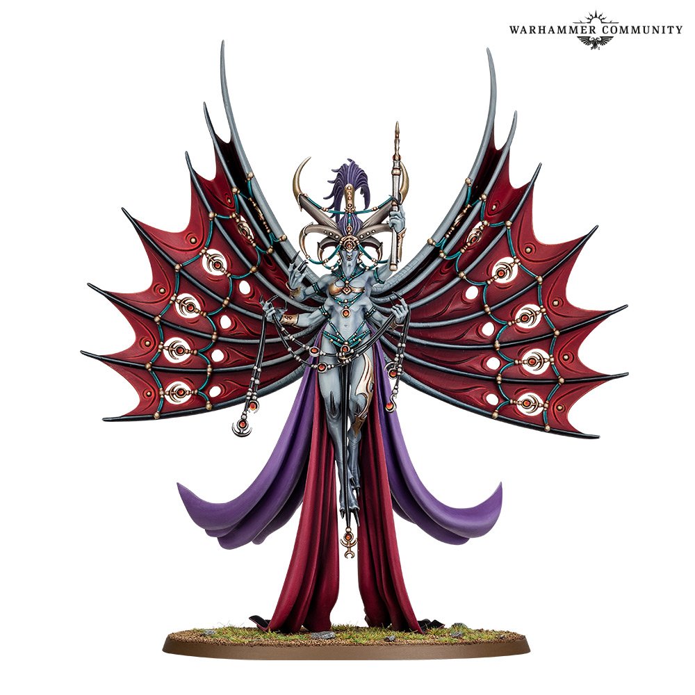 Real quick, I just want to add that I love the word play here (Dextra being the Latin word for Right Handed and Sinistra meaning left handed. GW Loves their faux Latin). Anyway onto the "Twins". This dual kit model allows you to build either one to your preference. Fittingly the two are of similar power but have opposite rolles on the table. Theyre both reasonably priced at 280 and 260 points, though it may be hard to justify both of them. They're not quite as powerful as a Keeper of Secrets, being much cheaper, but they have much more specialized roles. Dexcessa is a meant to cut down your foes in melee while Synessa hangs back and directs the army from the rear.