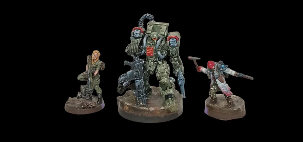 Blackjack Fireteam (Duo, Haris): If you’re not taking a Minuteman as a Big Gun, you’re probably taking a Blackjack, who does at least bring a second wound to the party. You lose that sweet +1SD but you do get BS (-3) which is a very solid buff to their ability to win F2F rolls. If you’re taking a Blackjack in a Fireteam I would probably recommend a Haris with Rosie and a 112 FTO, as this gets you the +1SD shooting bonus (Rosie and the 112 are ‘Counts as Grunts’, which gets you the Duo-equivalent pure fireteam bonus) and, if you really need it, the 112 can try to Doctor the Blackjack if it falls over in the Transmuted state.