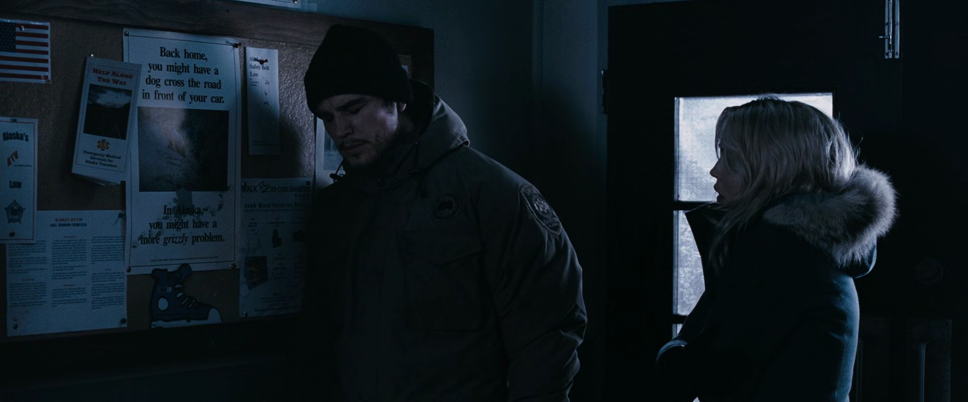The conceit is in the title: Our story is set in Barrow, Alaska, at the top of the world. It’s that time of the winter when, well, it’s about to get dark for a number of days. We open with Sheriff Eben Oleson (Hartnett) figuring out that someone’s gathered and destroyed all their sat phones. Someone’s then gonna kill all their sled dogs, sabotage their helicopter, destroy their cell tower, cut their phone landlines and power, and then the trouble will really begin.