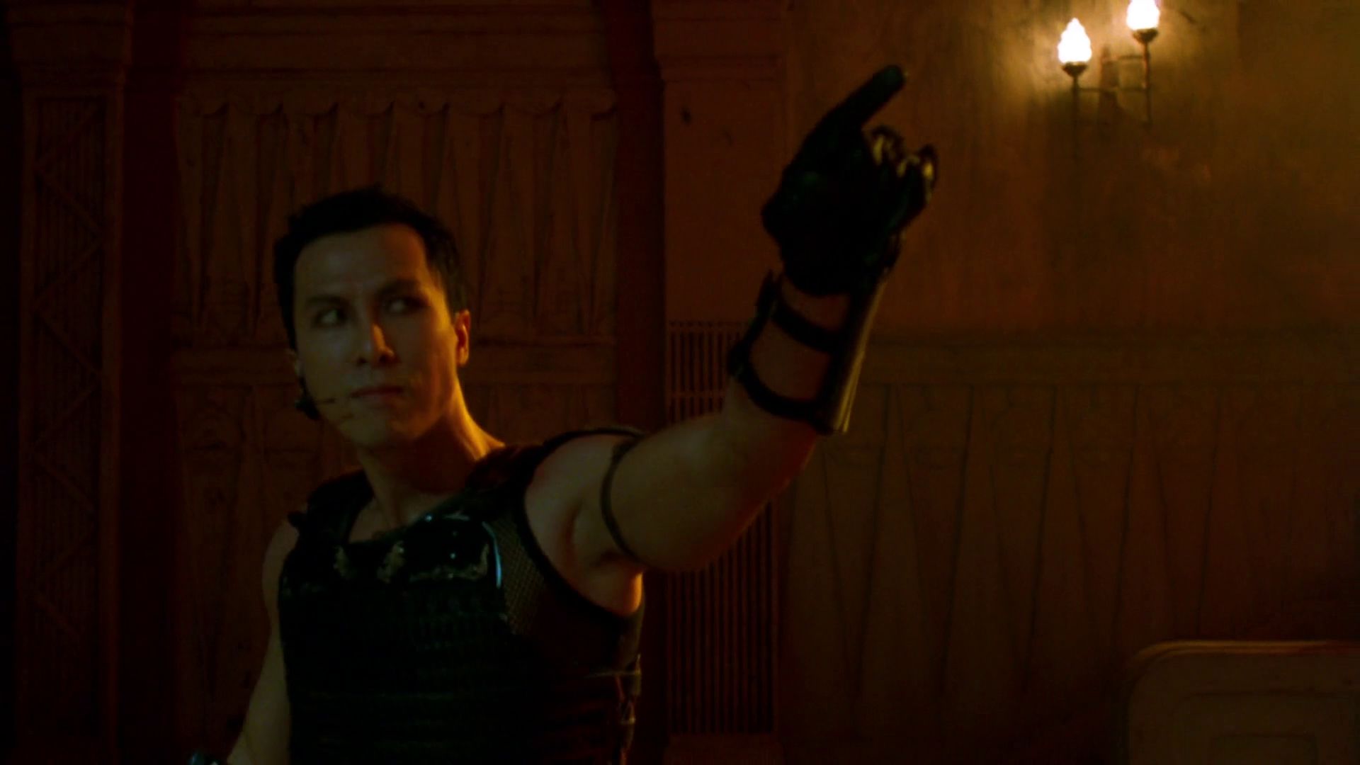 This is about where the good news stops. The cast is serviceable-to-good; Goss and leading lady Leonor Varela, who plays the vampire swordwoman-assassin-princess Nyssa, both see the biggest roles of their careers here (though Varela is maybe more memorable to this column’s audience as the first actress to play Marta, the put-upon on-again off-again girlfriend of Gob Bluth in Arrested Development). Ron Perlman is the leader of the vampire tactical team, playing the German “Reinhardt” and not even bothering to attempt an accent despite half the banter around his character clearly expecting him to have one; Kris Kristofferson is back as Whistler, and is a welcome return despite the script feeling it needs to spend the first 15 minutes of the film explaining how that’s possible given he shot himself in the head to stave off turning into a vampire in the first film (the answer is both tedious and unconvincing); Norman Reedus of recent Kojima Productions fame is Blade’s new youthful gadgets engineer Scud, woefully miscast as a “sick moves, daddio!” early aughts cool kid, constantly smoking what is clearly supposed to be a joint but is just a handrolled cigarette; his most irritating moment in the film is when Scud gets a FedEx box delivered to his vampire-hunting van on overwatch duty outside the nightclub and he opens it to pull out a box of Krispy Kreme donuts which he has presumably had shipped over from the Good Ol' US of A, smiling and saying, "Mother's milk." Impressively, the joke neither works coming nor going, and making him incredibly annoying undercuts their half-hearted effort to make you think Whistler's the mole instead of him. Most galling of all the casting decisions is prime Donnie Yen at the height of his powers playing Snowman, a silent member of the vampire tactical team who gets one cool sword fighting scene and then dies offscreen in the sewers. Snipes is nowhere near as checked out as he’ll become in the third installment of this franchise, but he’s not given much to work with, and he struggles with the choices the script does make about Blade.