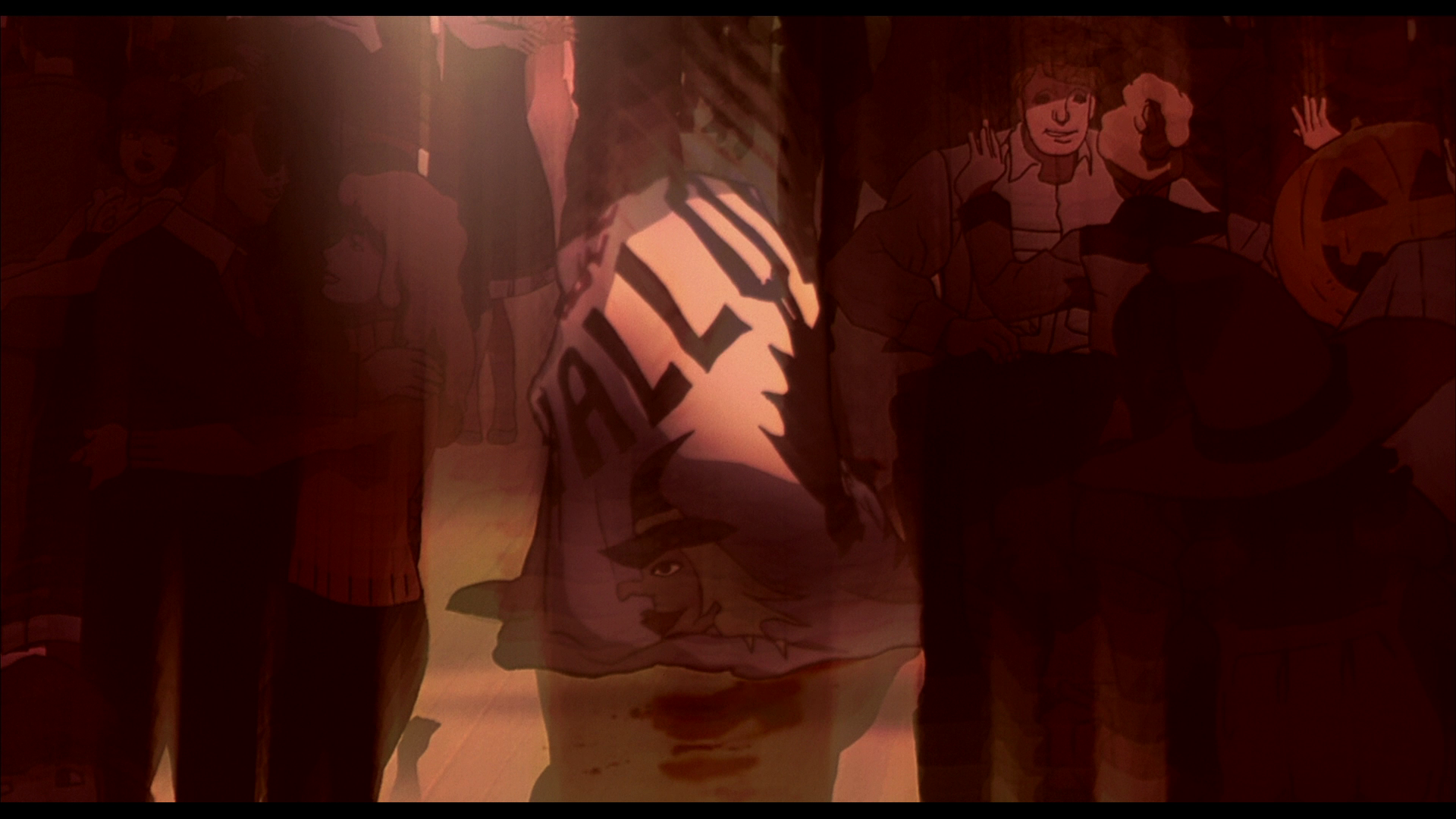 The story for the OVA is pretty direct: Saya kills a man on a Tokyo subway train because her American government handlers tell her to; it’s unclear whether or not this man is actually a demon, and this never-resolved question is the only real mystery in the plot. She is told she is to go to Yakota Air Force base in Tokyo where she has been given cover on the base’s high school for American military brats as a prospective incoming student; there is a chiropteran there that needs killing. She discovers there are in fact three -- two of them posing as girls her apparent age and slaughtering classmates in the nurse’s office, and a third posing as the madam of a hostess club that panders to American GIs just off the base. The two “girl” demons attack the school nurse; Saya kills one and forces the other to flee, breaking her sword in the process -- she leaves to find another from an antique store she saw earlier in the day, and the nurse foolishly chases the chiropteran into the base’s Halloween social. She corners the demon on the dance floor and Saya barges back in to try to save the nurse a second time, only to discover the sword from the antique store is a fake. In a dreamy sequence focusing on the military band playing jazz on stage, the chiropteran forces both outside without anyone in the busy dance hall somehow noticing; Saya drives the beast off with the fake sword anyway and she and the nurse flee to the motor pool. Meanwhile, her support team chases the one remaining chiropteran across the base to meet them at that location. David has located a real replacement sword for Saya and delivers it just in time for her to kill the second of the monsters, and then they chase the fleeing third beast down the airfield as it attempts to hitch a ride on a departing plane. Saya cuts it down and, as it lays dying, feeds it a few drops of her blood; it immediately expires. In the film’s coda, the nurse is being interviewed by people from the American government about what happened; the entire affair has been covered up, but she’s shown a picture of Saya from 1892 labeled VAMPIRE and asked to confirm if this is the same girl.