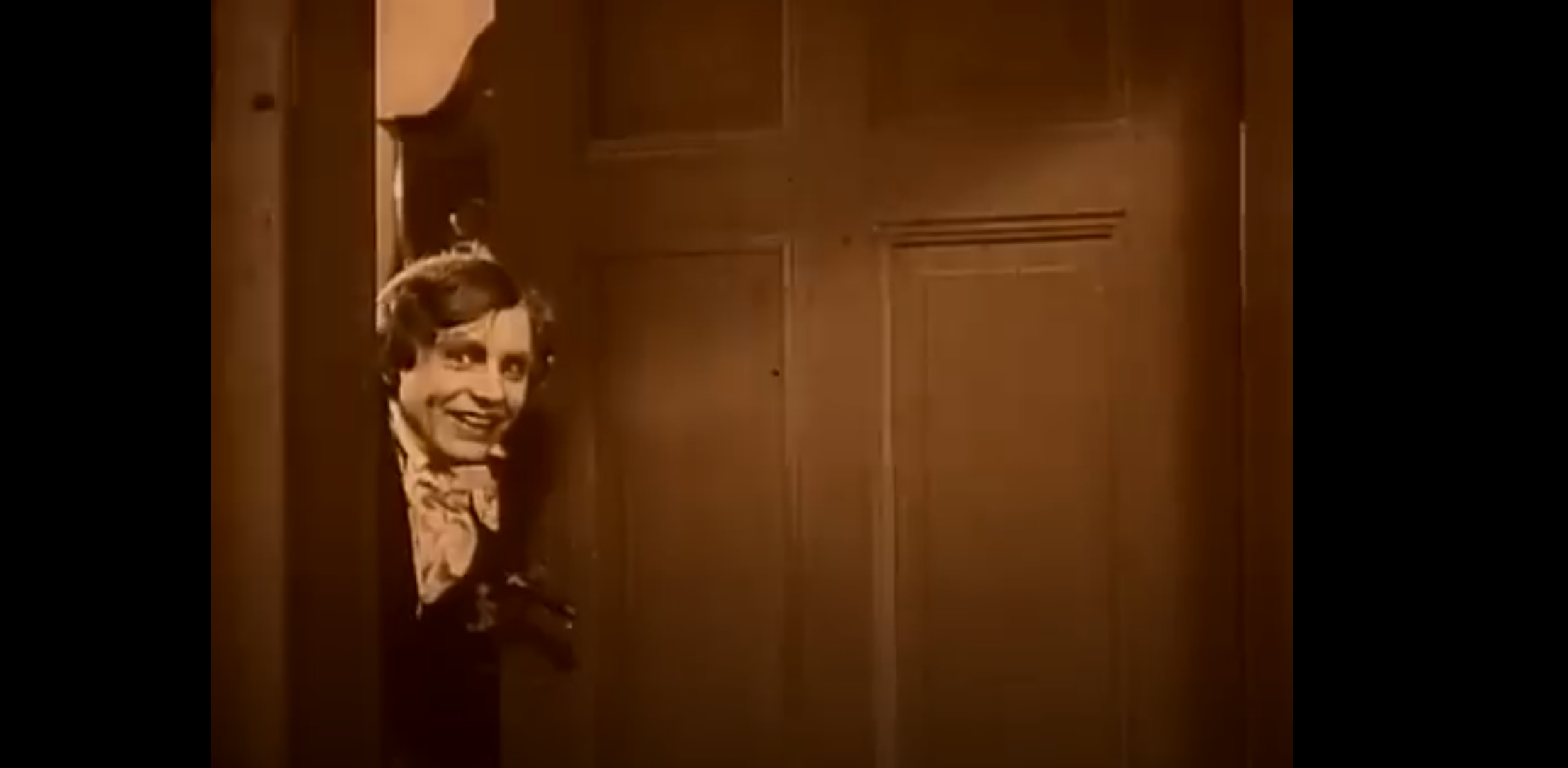 In the text of the film, Orlok is not supposed to be endearing. He is not supposed to be funny. He does move around with extreme exaggeration, because that’s the style of filmmaking being employed; Hutter, for his part, bounces around like a madman when he’s happy, swoons and sighs when he’s sad, puts on comically horrified faces when he’s scared -- in fact, one of the genuinely creepiest parts of the film to my eye had nothing to do with the vampire himself. It was this shot of Hutter, having just picked some flowers for Ellen, sliding through the front door with a smile as he prepared to sneak up and surprise her with them. If a man with that smile slides through an off-centered doorway into frame in a modern movie, you as a viewer are supposed to be startled and either put off or outright threatened by him -- especially with the degree of unreality in that lighting! But Hutter’s just being a nineteenth century wifeguy here.