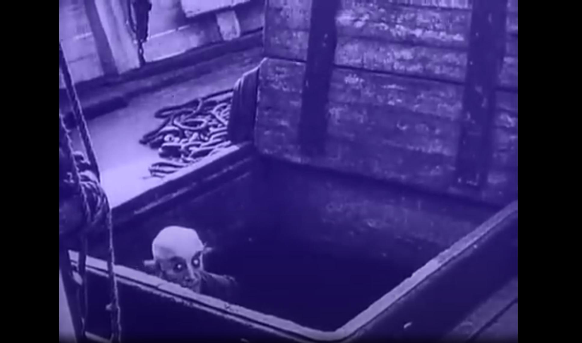 But we’re concerned mainly with the most enduring part of Murnau’s film, the one that had the most direct downstream effect on popular culture, vampire and otherwise, and whose own place of prominence historically is part of what neuters any real horror in this film: That weird little guy, the big bad Nosferatu himself, Count Orlok.