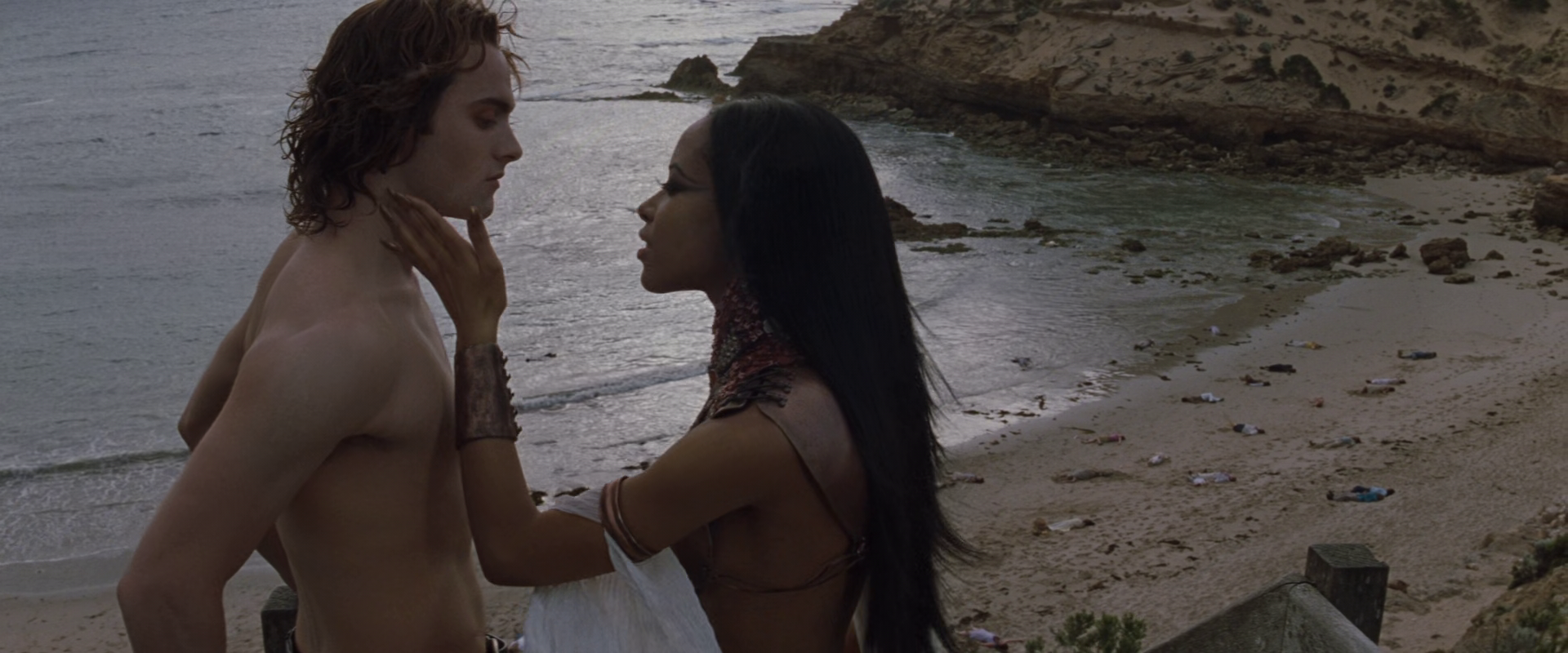 For some reason fire is actually Akasha’s main weapon of choice, and vampires she kills burst into flames. I don’t recall this being a main focus of the character’s from the source material, and my suspicion is that this is a conceit of the film because fire is relatively easy to achieve as a computer effect and extremely easy to achieve as a practical one, much more so than liquid blood. There’s an entire C-plot to this film running through flashbacks to both Lestat’s and Jesse’s past that explain the lore behind who Akasha is and who the good guy vampire cult that shows up to help Lestat, Marius, and Jesse defeat the Queen of the Damned are, but it’s sloppy, vestigial, and uninteresting -- the wages of Warner Brothers deciding to just adapt the second and third Anne Rice books they had rights to into one film rather than lose the rights entirely, with predictably poor results. The movie finally gets rolling as Akasha spirits Lestat away to an island paradise to fuck him, feed on him, feed her blood back to him, and give him the power to walk in the daylight…which he realizes upon walking outside the next morning and seeing that Akasha has butchered every man, woman, and child on the island while he slept. Now we’re talking. Now we’re gonna see some stuff. Now the rivers of blood are -- wait, there’s only 20 minutes left in this thing? What?
