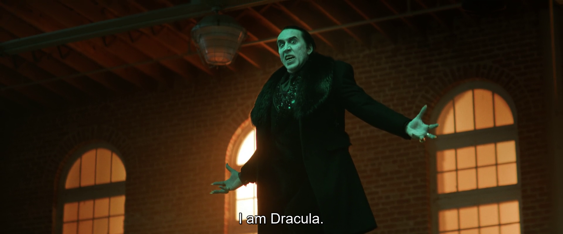 Like again: I’m not saying the movie should be serious, and that would make it good. I’m saying the levels are way out of whack all over the place, and lead to an unsatisfying viewing experience. I am at least glad it’s a slim 93 minutes; it leads to Drac’s master plan not really going anywhere and the world domination scheme not being all that sketched out before he gets killed by Renfield believing in himself and ending the cycle of abuse (and Rebecca learning the holy ritual scene in a flashback earlier offscreen, from “Wiccan Tumblr”), but who cares. A hair over ninety minutes is just enough time for this thing to squeeze all the juice it was interested in squeezing out of the concept and, more importantly, letting Nic Cage screw around.