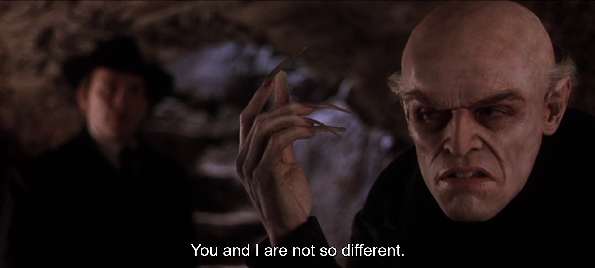 Shadow of the Vampire is usually described as a horror-comedy, which is accurate enough; it is quite serious and horrifying when it wishes to be and no less funny than either of the preceding Nosferatus. The Eggers version of the film is about the farthest this ersatz ‘franchise’ has strayed from its comic roots, and even that rendition of the tale gets some laughs out of how cloyingly self-serious it is. It was successful enough in theaters to make back its budget and little more; Ebert loved it but a number of critics very much did not. This, from the man who remains The Guardian’s lead film critic to this day, is a good example of the kind of negative review the film got when it came out: Full of lapses in attention (contra Bradshaw’s claim that it appears nowhere in the film, the “symphony of horror” subtitle from the 1922 original is said aloud by the writer Galeen as soon as Murnau finishes shooting the first scene with Orlock) and fundamental culture-critic tediousness (“So are we supposed to laugh at Malkovich and Dafoe, or with them, or what?” Bradshaw asks, rather than doing the job of answering this for himself and his audience). Fine; so it goes. This film was never going to find purchase with those who think that “in making Max Schreck a genuine vampire, playing an imaginary vampire in a film, [Merhige is] giving us twice as much vampire as we really need.” A ridiculous statement with a ridiculous premise. Are you here for the vampire feature or not, sir?