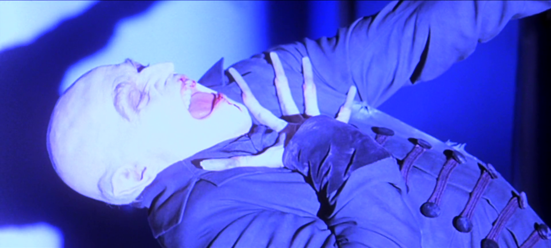 So Murnau is Renfield, but unfortunately for the vampire, he is not Orlock’s Renfield. He is the camera’s. In that first scene with Greta, she has a line when Murnau asks her why she’d ever prefer the stage to his films: “A theatrical audience gives you life, while this thing…” --and here she indicates Murnau’s lens-- “...merely takes it from you.” The camera is Murnau’s god; Murnau’s weapon; Murnau’s monster. This is not the only time in the film these parallels are drawn: Orlock will seize upon it in a solitary moment during the shooting in Transylvania, letting the light play across him and casting, ah there it is, the shadow of the vampire. Murnau is operating the machine in the climax of the film as Orlock kills Wagner and Grau; after strangling the life from the producer, Orlock turns to the camera and advances on the director. Murnau tells him to get back to his spot on the set. We see Orlock through the camera's eye, subject to its power in the same language of cinema as when a vampire hypnotizes a victim. Taking off his goggles, Murnau calmly informs his star actor: "If it's not in frame, it doesn't exist." His monstrosity -- his and the camera's -- overpowers the vampire's. The shoot continues. Murnau has gone quite obviously mad by now; there are many reasons why Herzog and Kinski’s relationship on set in the 1979 film was seen as an inspiration for Murnau’s and Orlock’s in Shadow of the Vampire, but none is more convincing than the way Murnau gives his actors stage direction during filming. Here is the direction he gives Orlock, as the vampire dies: