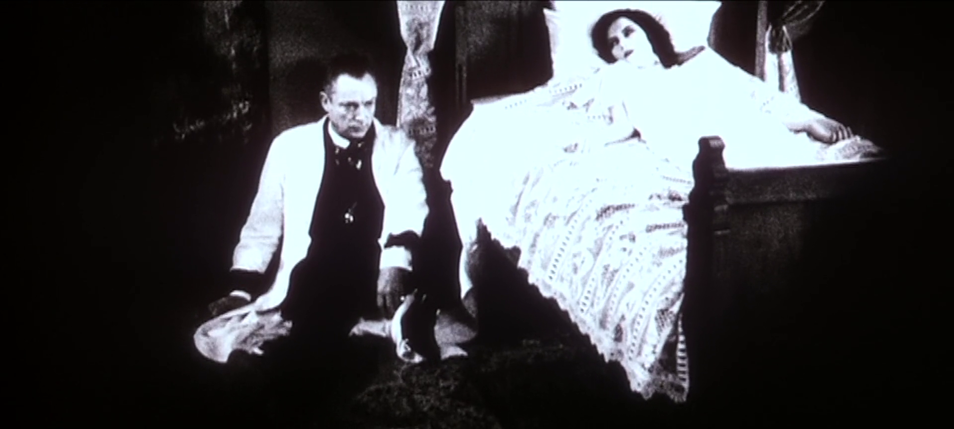 There is no Renfield or Knock in Murnau’s film because Murnau is Renfield. Instead of a real estate broker with a sideline in the occult and hidden but simmering homicidal mania, this fictional Murnau is a cultural broker, a respected man of the German film industry who gives men jobs and uses his position of power to arrange for them to fall into the clutches of the vampire. He secretly indulges in lurid, hedonistic vices -- a morphine addict; a patron of cabarets and exclusive sex clubs -- while maintaining his reputable image and thus his power. His right-hand man Wagner, a vicious, manipulative tweaker with a full medicine cabinet and the hair and jawline of an SS recruiting poster, is just as integral to Greta’s eventual demise as her own addictions and Murnau himself. The first moments of the final scene where Murnau, Wagner, and Grau pressure her into position to be fed upon by Orlock despite her rising panic are the most tense and uncomfortable of the film. She realizes too late the quality of man with which she has surrounded herself. They all go down together, the lone survivor Murnau clearly losing what’s left of his mind, and perhaps that’s for the best; in fifteen years’ time, all of those men would have been Nazis. In a particularly unsubtle moment underlining this, when Grau and Wagner find Murnau in his chambers right before the film’s climax out of his mind on morphine, one of the symbols of protection he has drawn on the wall framed in full view of the camera and in the middle of the shot is a swastika. It of course meant something very different in 1922; but this movie wasn’t made in 1922.