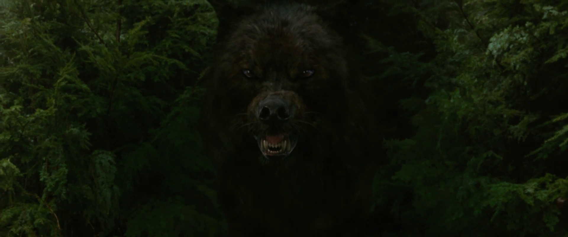 Speaking of -- the werewolves in this actually look pretty good, mainly because of two key decisions that Underworld went the other way on: First, don’t spend a long time with their transformation and turn it into a body horror thing. Werewolves in New Moon rarely switch forms on screen and when they do, the human body just kind of tears away and a giant fully-formed dog replaces it. Second: Yeah, just stick with giant wolf-dogs. None of these half-man half-beast forms intended to show off ripped arms and abs; just have those on the human form and don’t let any of the guys wear shirts. The technology, especially at this point in time, is much better suited to figuring out how to make real animals look good in natural light than big unnatural movie monsters. Also, not for nothing, but the game here is making these monsters incredibly sympathetic and not gross -- all the hot boy protestations about how they’re irredeemable creatures of the whatever is entirely romance novel chaff being set up for the heroine to sweep away, after all. Like with the vampires in this series glittering in sunlight instead of burning, you want big cuddly dogs here, not weird ugly mutant freaks.