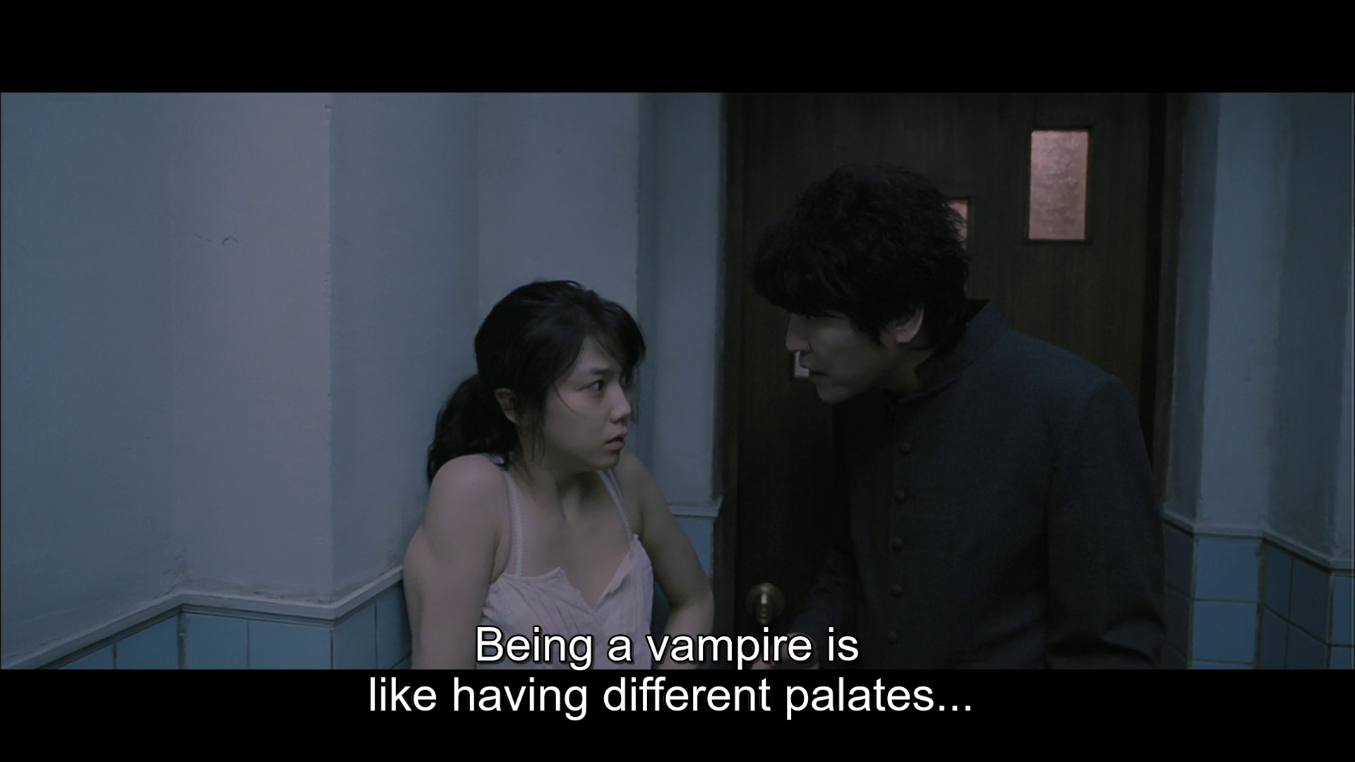 He pursues an affair with Tae-ju, and eventually kills Kang-woo with her help so they can be together, justifying it because Tae-ju says that he beats her. A police investigation ensues; Kang-woo’s mother slips deeper and deeper into a fugue, eventually having a stroke that fully paralyzes her but keeps her aware of the world. Tae-ju confesses that she lied about Kang-woo being abusive in order to manipulate Sang-hyun into killing him; in a rage -- he’s having more and more of those, and becoming more and more physically abusive of her and everyone around him -- he kills her. Regretting it, he drains her blood, and then pours his own into her, turning Tae-ju into a vampire.