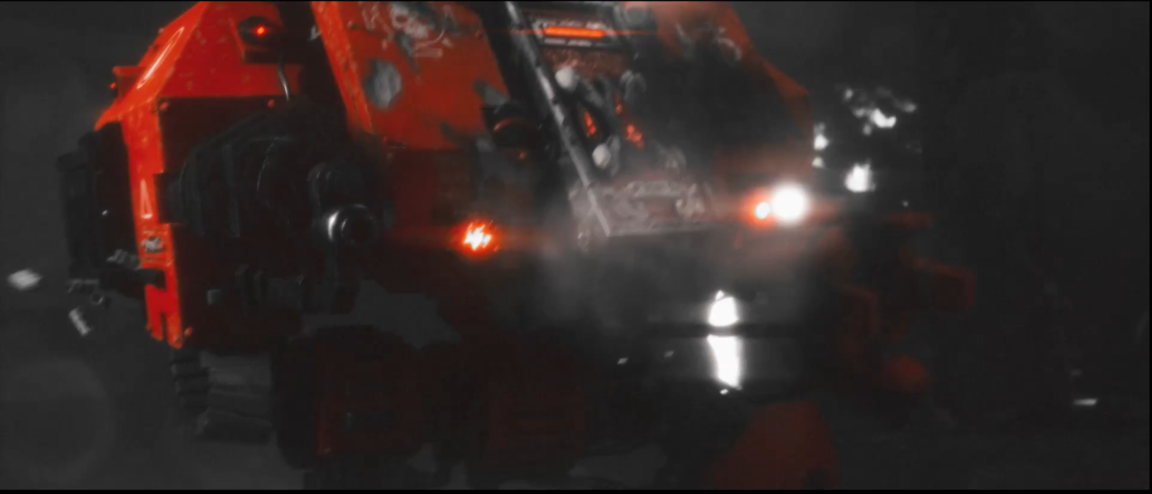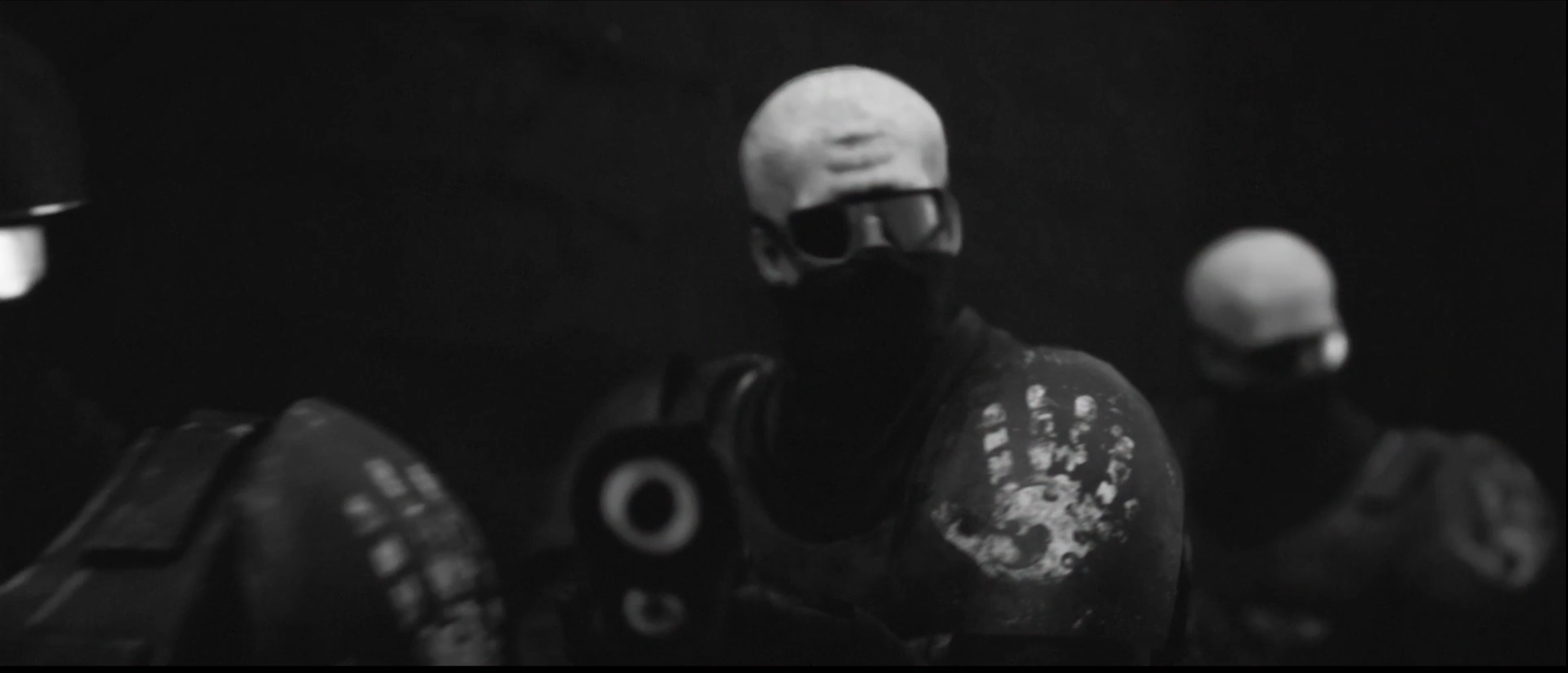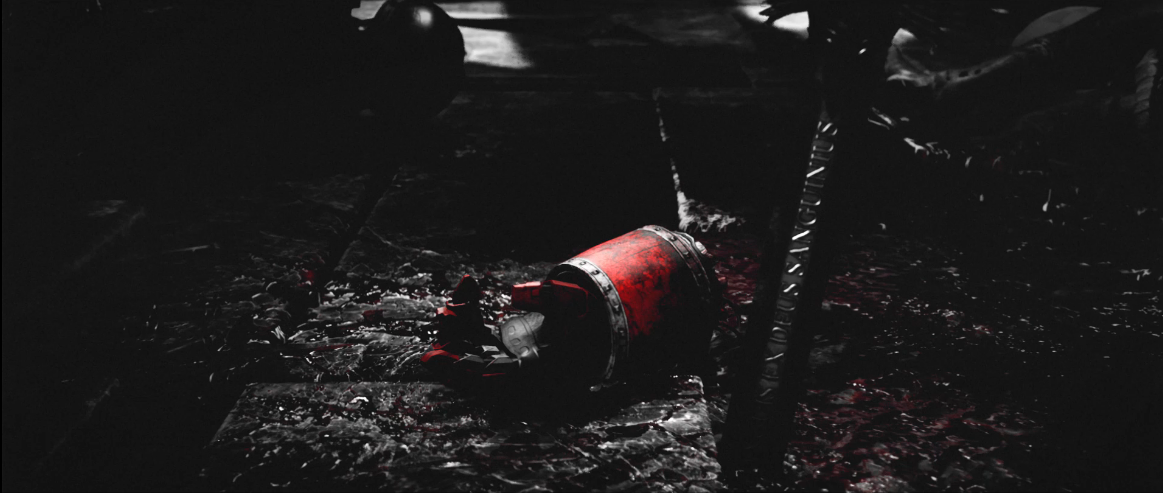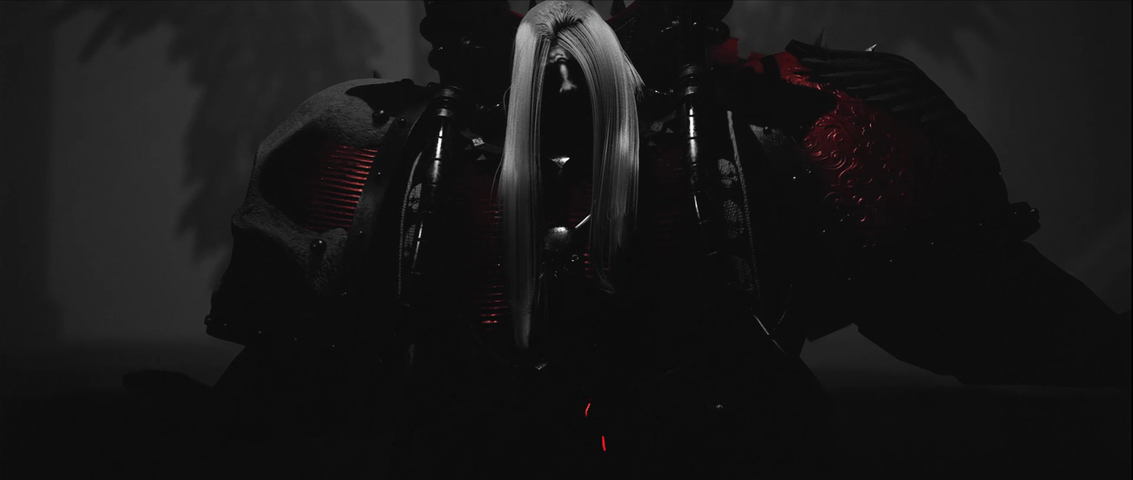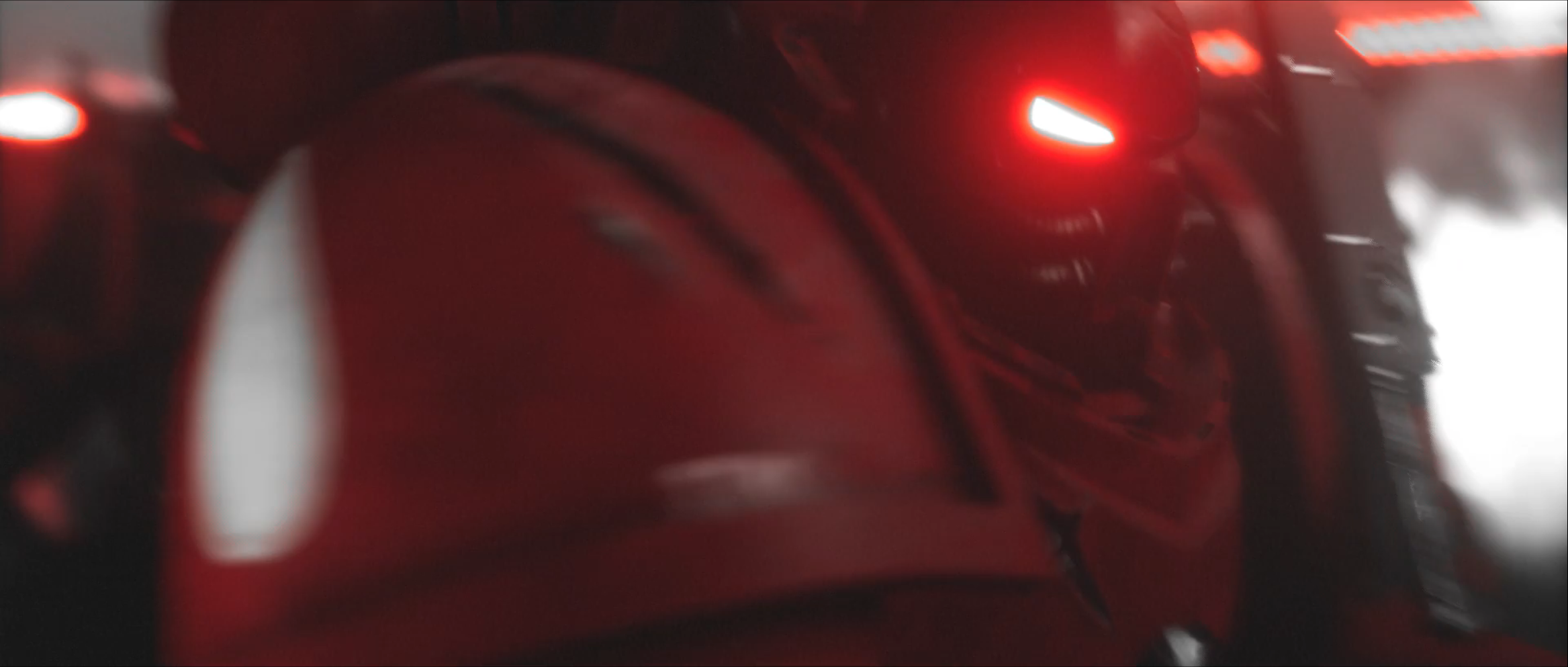 Let’s start with the positives. They’ve made a daring choice to completely remove color from the animation except for red, and only use red when presenting blood or blood-related palettes -- Blood Angels heraldry, for instance, or the sky on their homeworld Baal in the one flashback scene we get there -- while other things that otherwise would contain the color, such as fire, are rendered entirely in black and white. (There's one exception to this: all the lastech weapons the corrupted Guardsmen use get to be red as well. There's no blood connection there; it's just for legibility and because lasers should be red. I understand it, but I don't approve.) The show is beating you over the head with the Angels’ obsession with their own blood and the grim doom that awaits them and the rest of the inhabitants of the 40K universe, and this is probably the most effective component of that aesthetic. While it’s an excellent choice both for the content and the mood of the project, it’s also worth noting that the heavy, heavy shadowing it leads to also helps cover for some of the animation’s technical limitations. This was not made on the biggest budget in the world, and the visual style helps with that -- though no amount of shadows will make it less obvious that they’ve got one Bald Guy model for basic Guardsmen and cultist mooks they’re using over and over again.