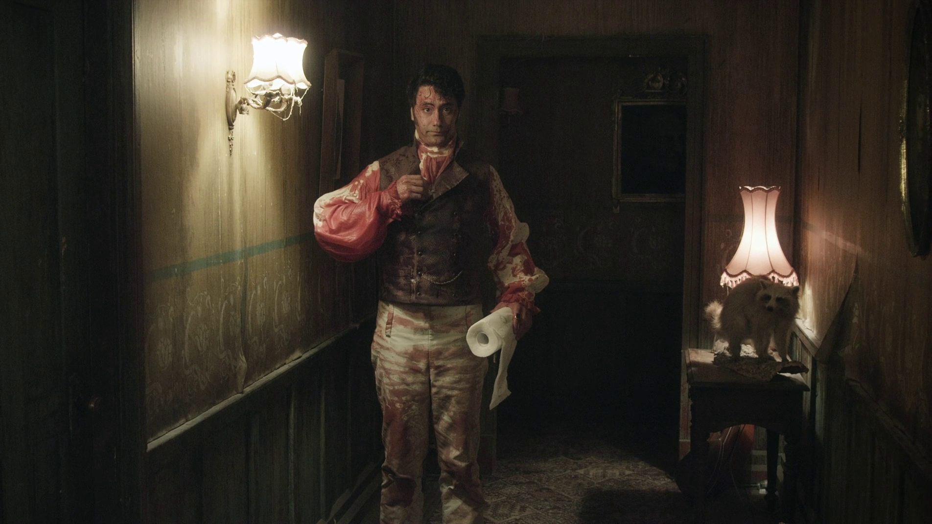 The conceits of both the film and the show are broadly the same -- four vampire roommates live in a house together with a variable number of human familiars, and we follow them about their un-lives. Each vampire is broadly some sort of fictional archetype of the sort; the film has a pair of Draculas, a Nosferatu, and a more modern “scoundrel” vampire in Deacon (Johnny Brugh). Taika Waititi’s Viago plays off the posh dandy versions of Dracula from American film adaptations of the tale, while Jemaine Clement’s Vladislav leans into the old ‘Vlad the Impaler, scourge of the Turks who impaled all his foes on stakes’ version of the guy. Petyr (Ben Frashem), the Nosferatu in the basement done up in Orlok prosthetics and makeup that still give him enough facial range to do some great expression work, is also the vampire that ends up tragically burned to death. The majority of the film’s plot hinges around Nick (Cori Gonzalez-Macuer), one of the intended victims of the dinner party mentioned above, escaping the house onto the lawn and getting jumped by Petyr, who instead of just killing him also turns him into a vampire.